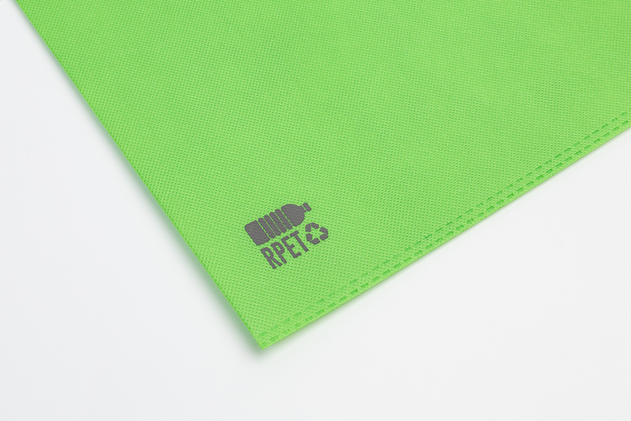 Shopper in TNT RPET 70 g/m². con manici fustellati ed etichetta RPET.