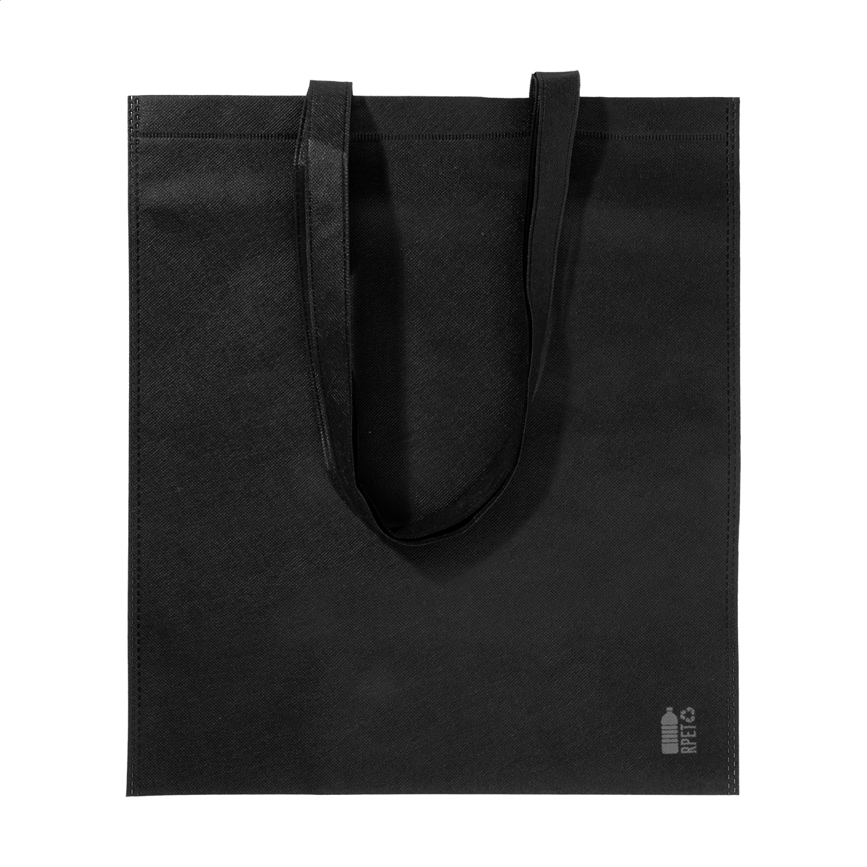 Shopper in TNT RPET 70 g/m². con manici lunghi ed etichetta RPET.