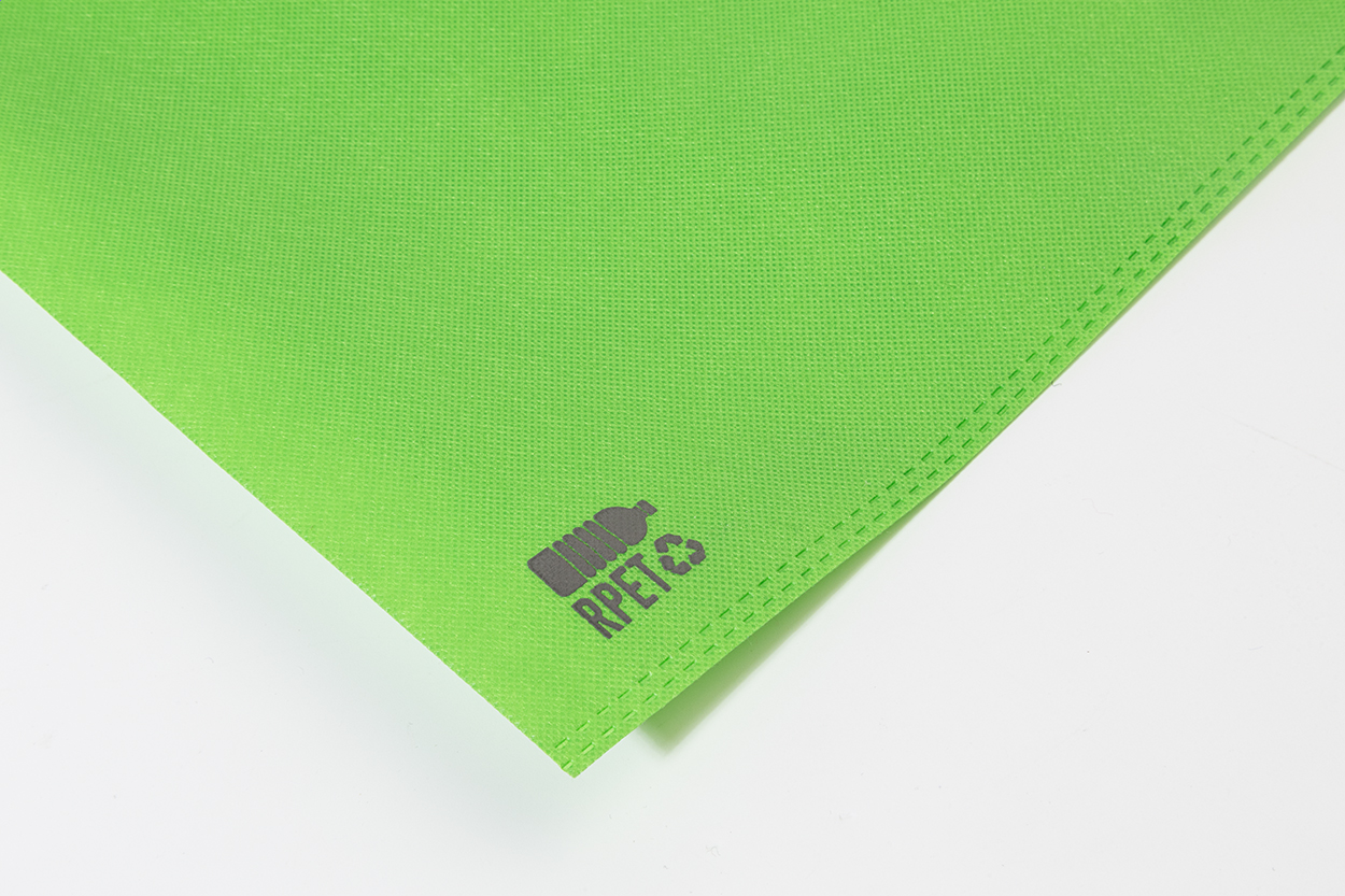 Shopper in TNT RPET 70 g/m². con manici lunghi ed etichetta RPET.