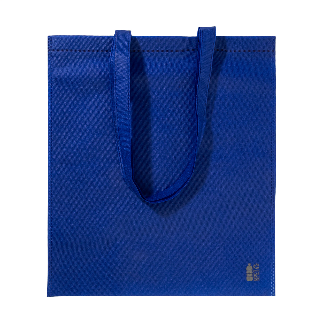 Shopper in TNT RPET 70 g/m². con manici lunghi ed etichetta RPET.