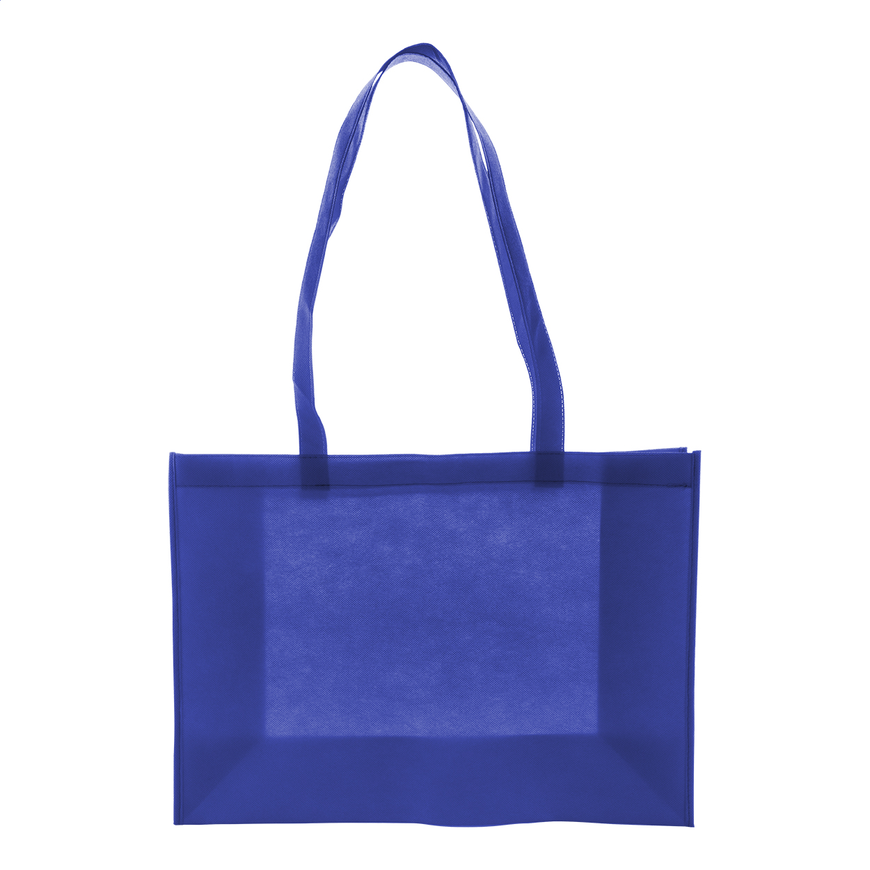 Shopper in TNT RPET 80 g/m², con soffietto manici lunghi ed etichetta RPET.