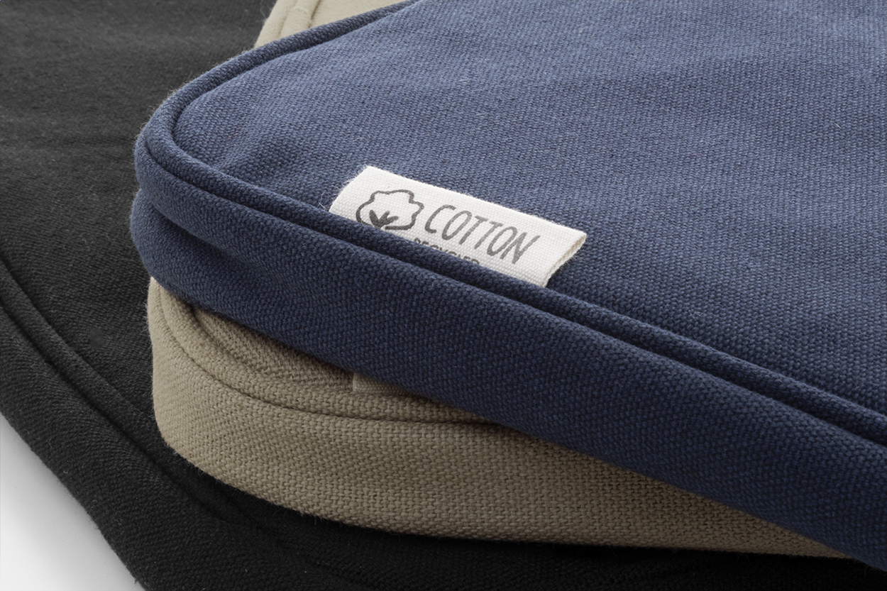 Borsa porta computer in tela riciclata completamente imbottita, con scomparto chiuso da cerniera e tasca frontale. Adatta a computer portatili fino a 15”. 70% cotone riciclato e 30% poliestere RPET. Etichetta cotone riciclato.