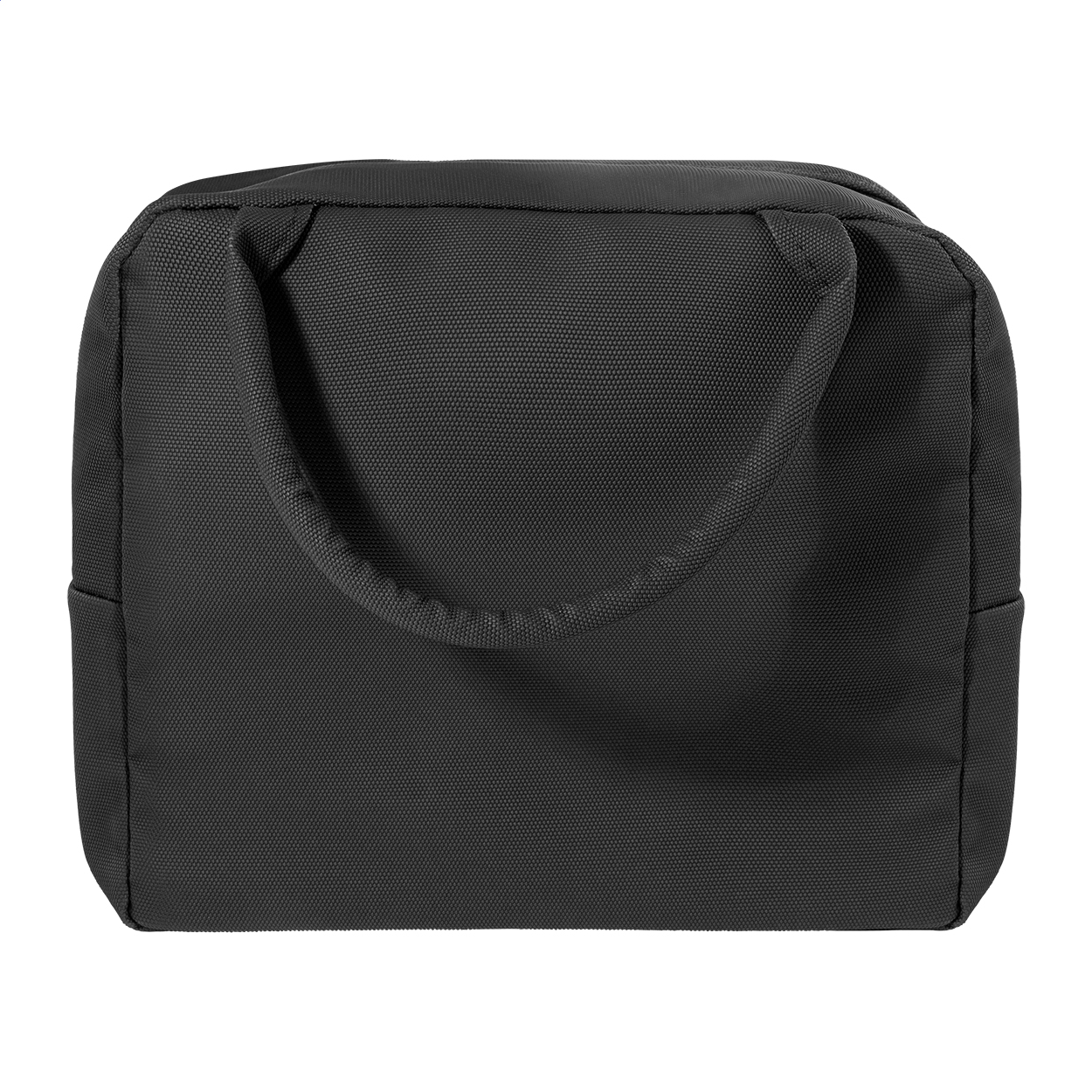 Borsa termica in morbida pelle PU riciclata con chiusura a zip, tasca frontale, imbottitura in alluminio ed etichetta PU riciclato.