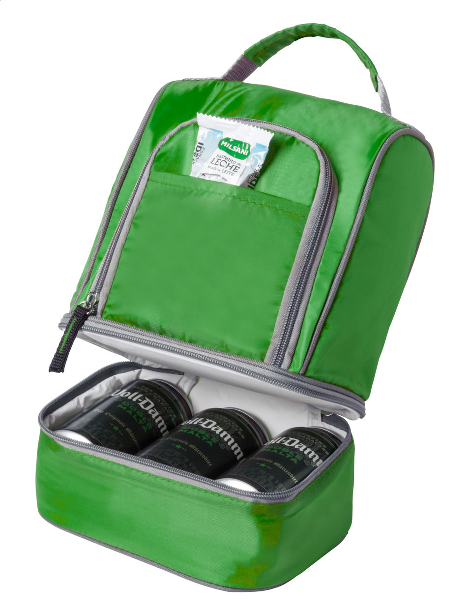 Borsa termica in poliestere 210D con cerniera e 2 scomparti.