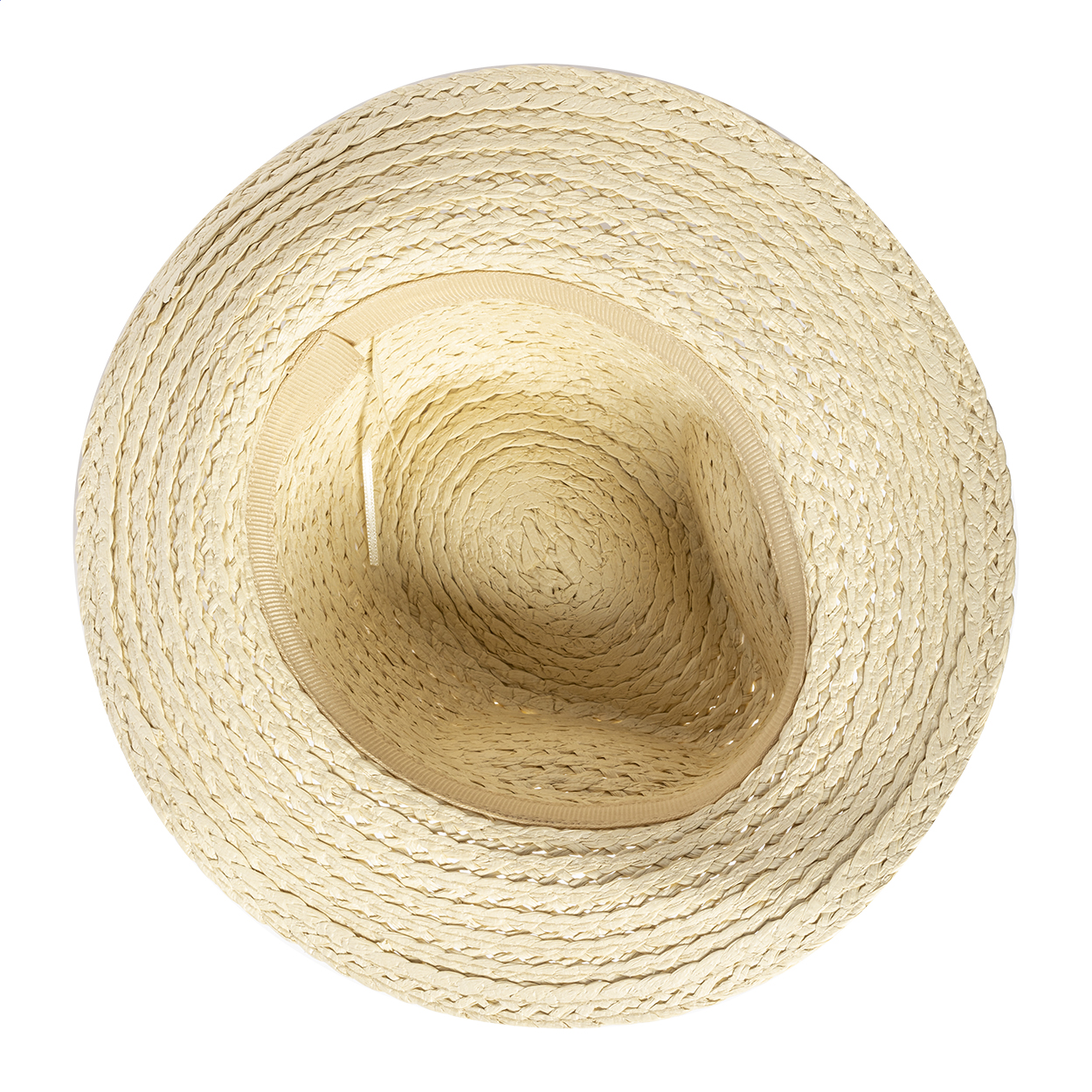 Cappello unisex in fibra di paglia sintetica e fascia interna regolabile. Questo cappello non è direttamente personalizzabile; la personalizzazione è possibile utilizzando i nastri con stampa in sublimazione (AP718139 / AP718367).