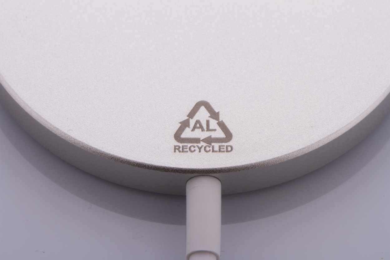 Caricabatterie magnetico wireless veloce (10W), corpo in alluminio riciclato. Compatibile con iPhone® 12 o successivi. Cavo di ricarica USB-C incluso.