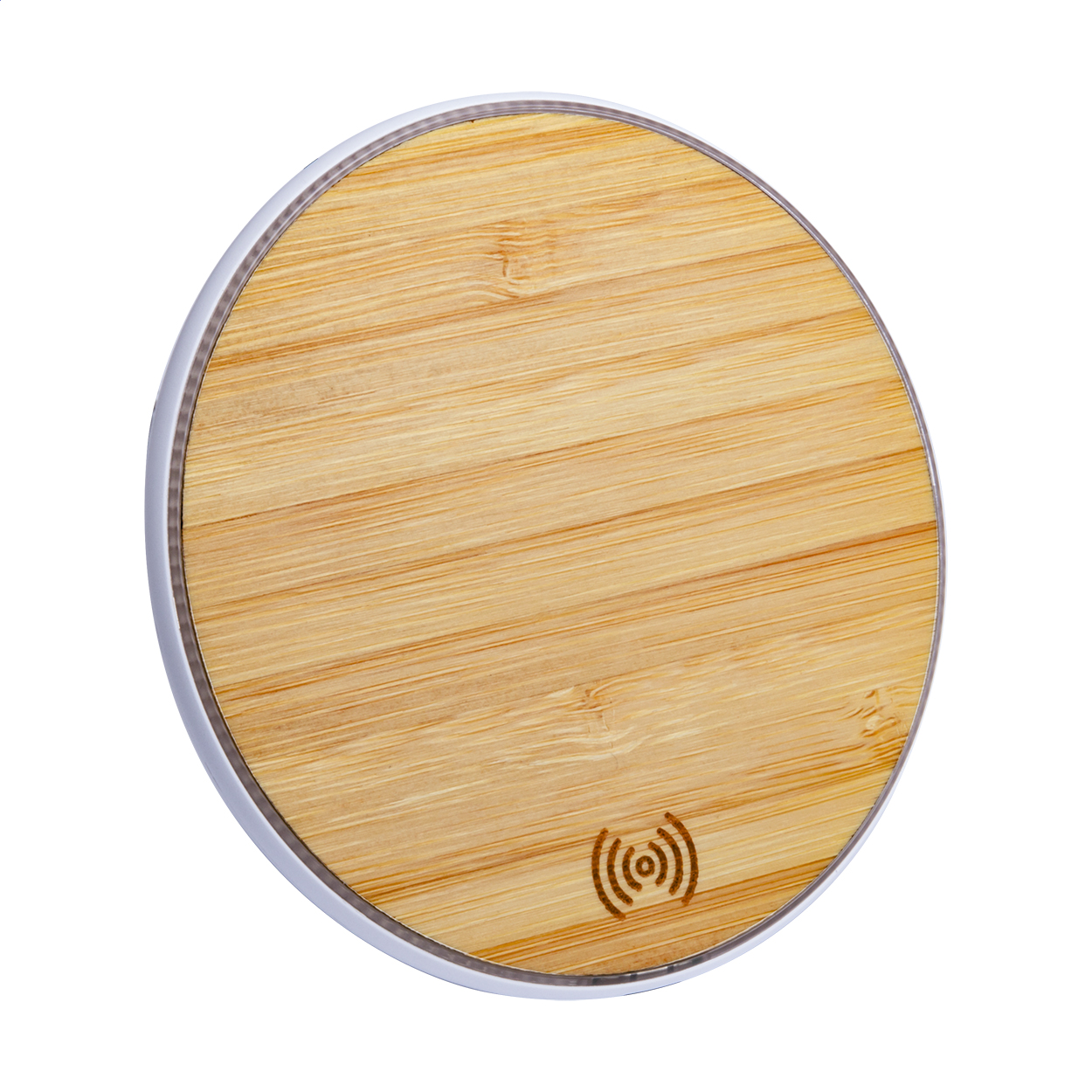 Caricatore wireless (10W) per cellulare corpo in plastica e bambù. Cavo di ricarica USB incluso.