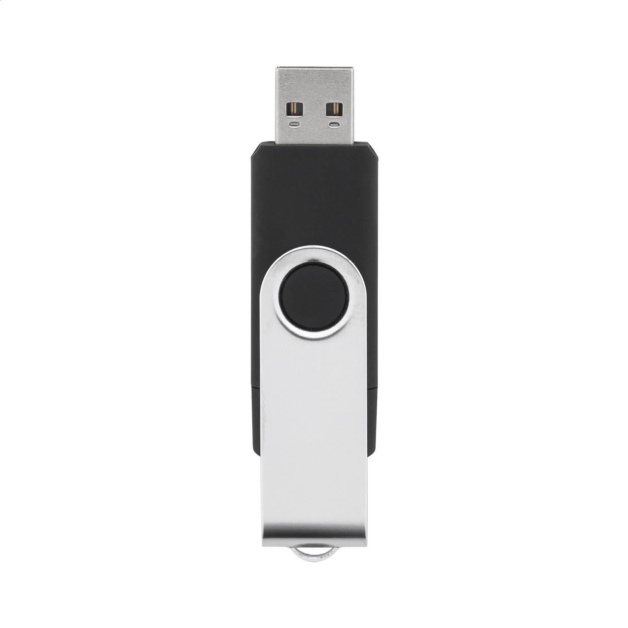 Chiavetta USB 2.0 Twist OTG in ABS riciclato con capacità di memoria di 8/16/32 GB corpo in metallo e connessioni USB e USB-C.
