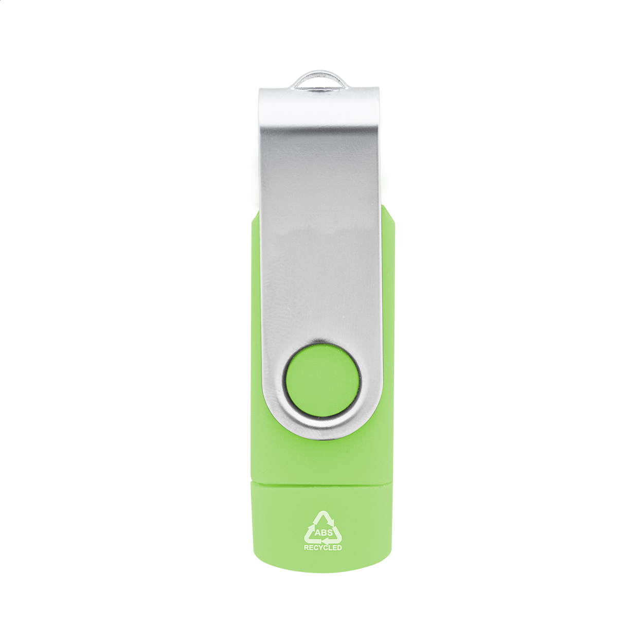 Chiavetta USB 2.0 Twist OTG in ABS riciclato con capacità di memoria di 8/16/32 GB corpo in metallo e connessioni USB e USB-C.