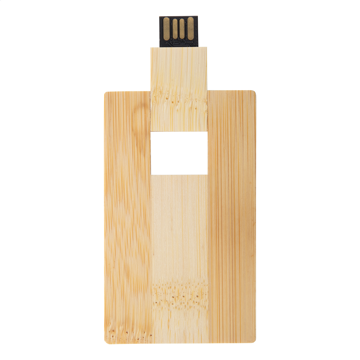 Chiavetta USB di bambù a forma di carta di credito. Capacità: 8/16/32 GB. USB 2.0.