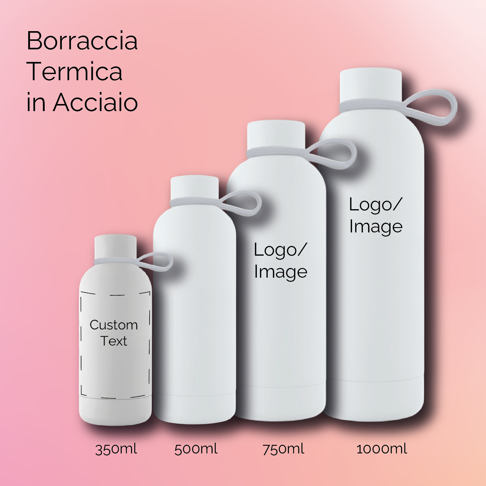 Borraccia Termica In Acciaio con Finitura Liscia (350ml, 500ml, 750ml, 1000ml) Personalizzata