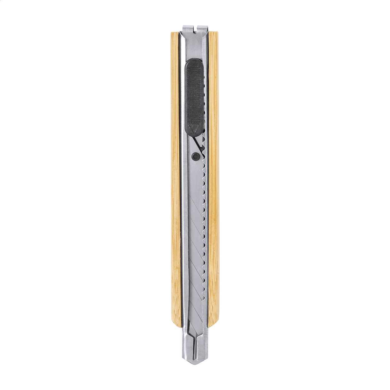 Taglierino in metallo con manico in bambù e blocco di sicurezza.