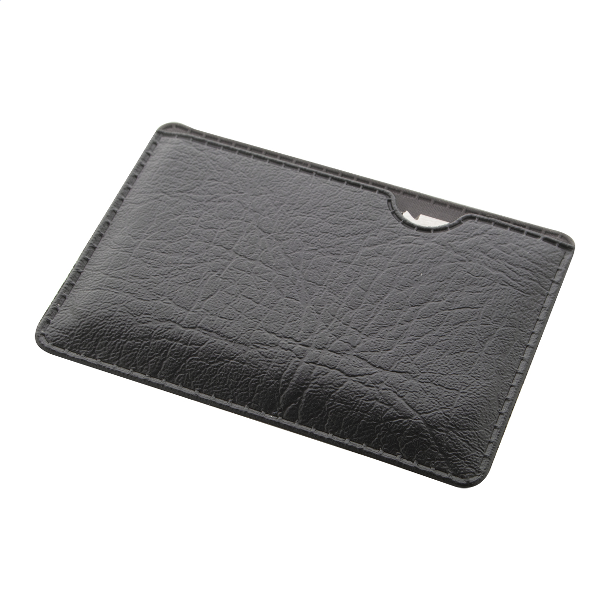 Multiutensile in acciaio inossidabile a forma di carta di credito con 11 funzioni e custodia in pelle PU.