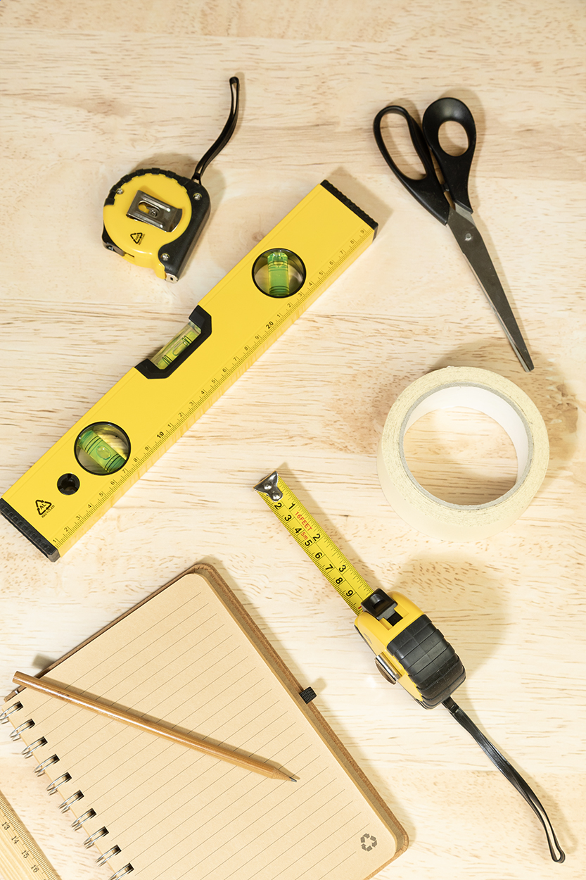 Tripla livella magnetica (orizzontale, verticale e a 45°) in alluminio riciclato e righello da 30 cm.