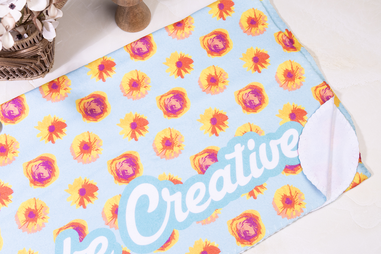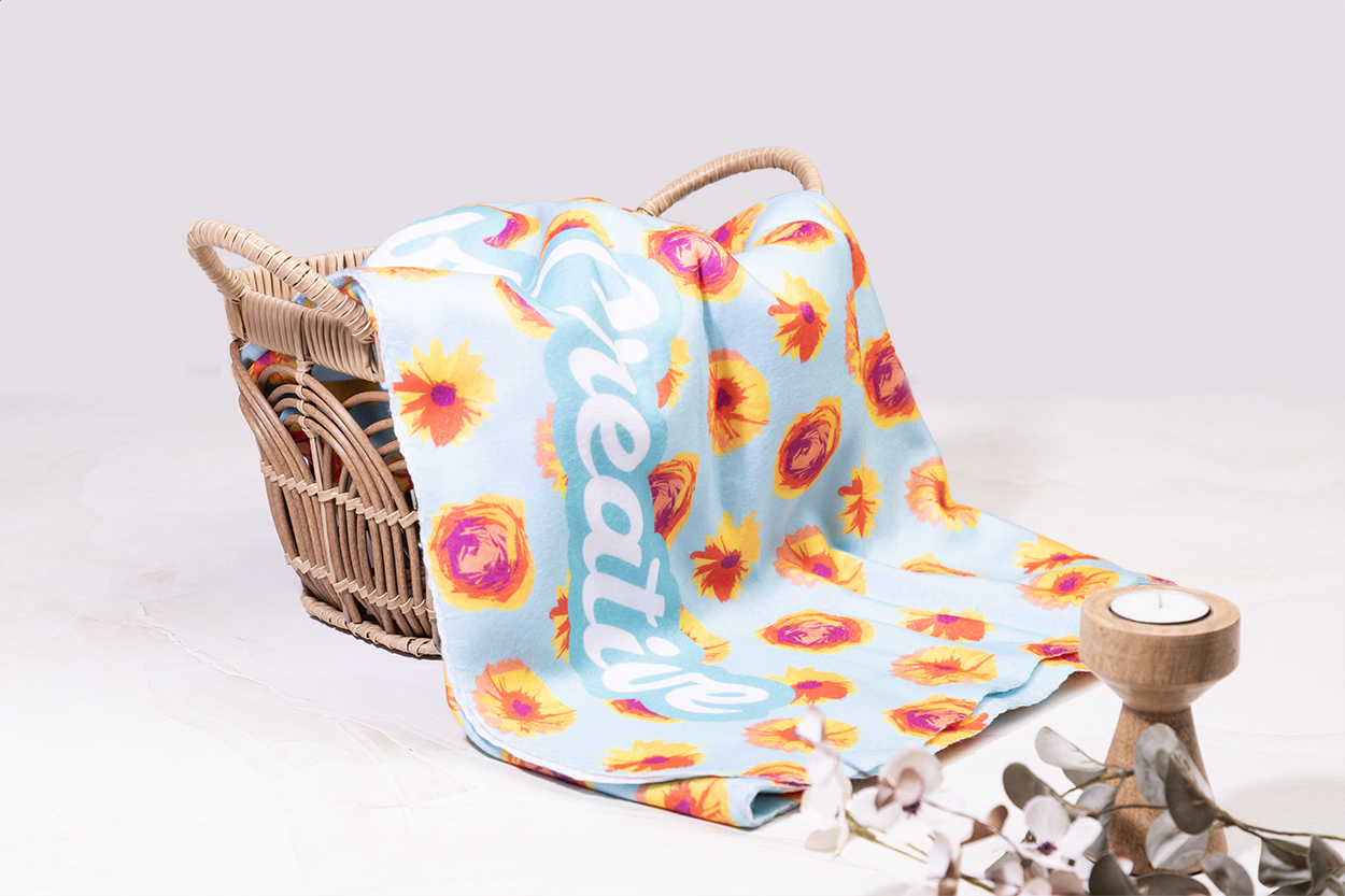 Coperta in pile di poliestere RPET (200 g/m²) personalizzabile, sul lato anteriore con stampa a colori. . Il costo comprende la stampa in sublimazione. MOQ: 25 pezzi.