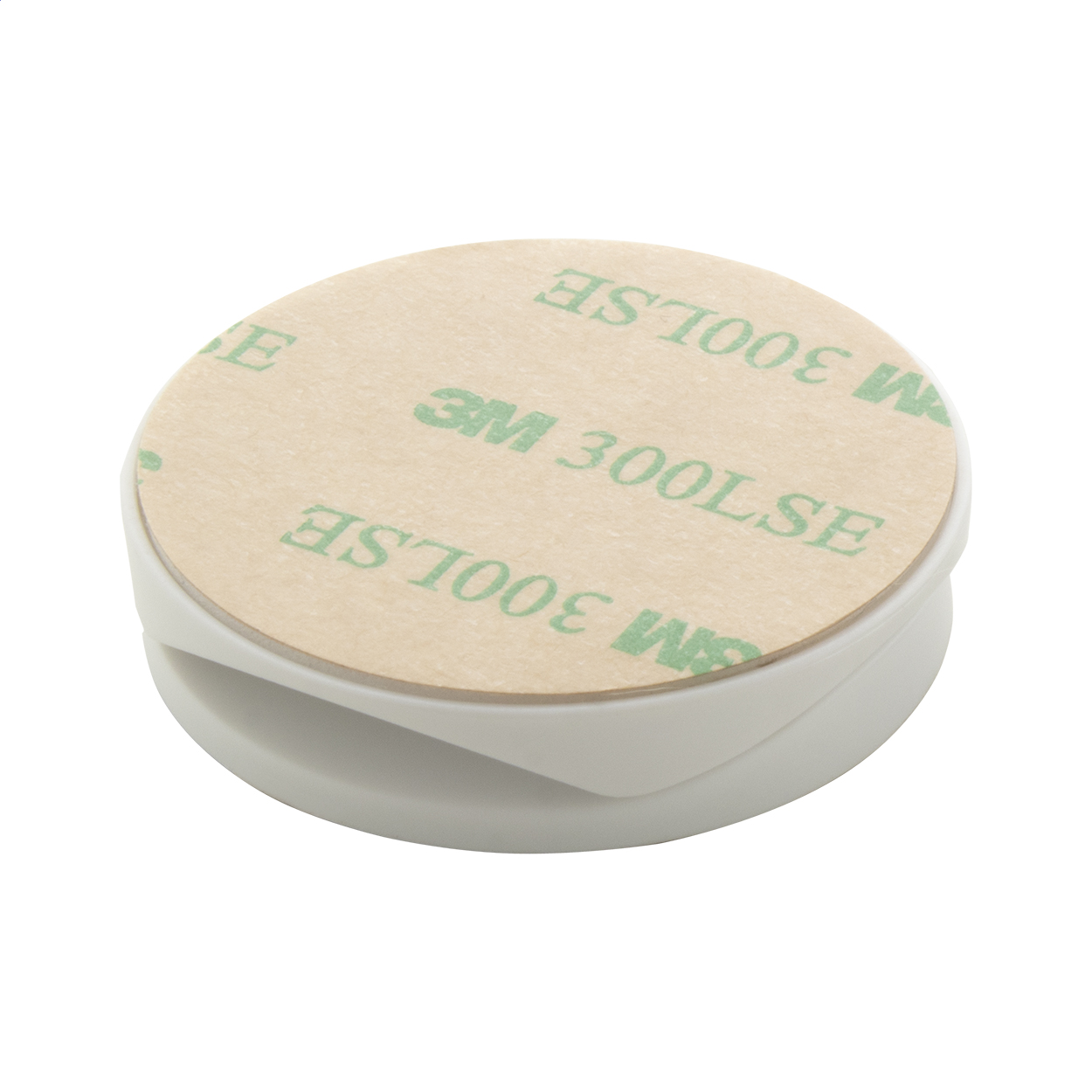 Portacellulare rotondo in plastica ricoperto in bambù con base autoadesiva.