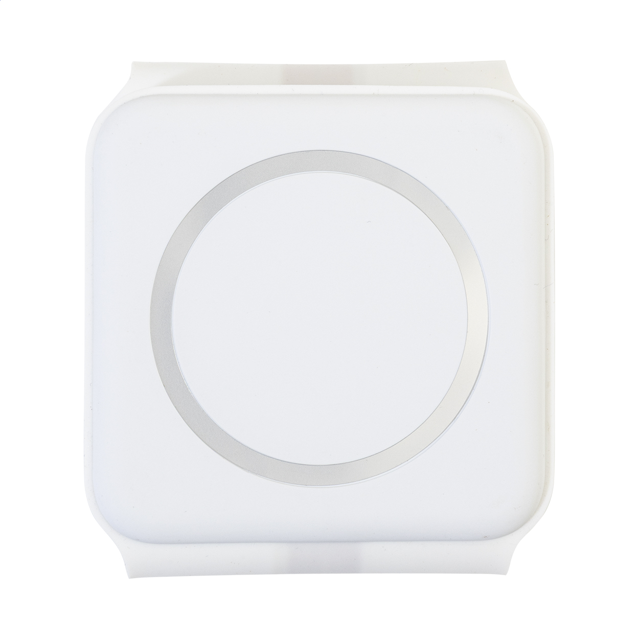 Supporto pieghevole per cellulare e set caricabatterie wireless in ABS riciclato. Con caricabatterie wireless magnetico rapido (15 W), caricabatterie wireless (5 W) per auricolari e caricabatterie wireless (2,5 W) per smartwatch (solo Apple®). Include anello metallico autoadesivo per cellulari sprovvisti di superficie magnetica. Cavo di ricarica USB incluso.