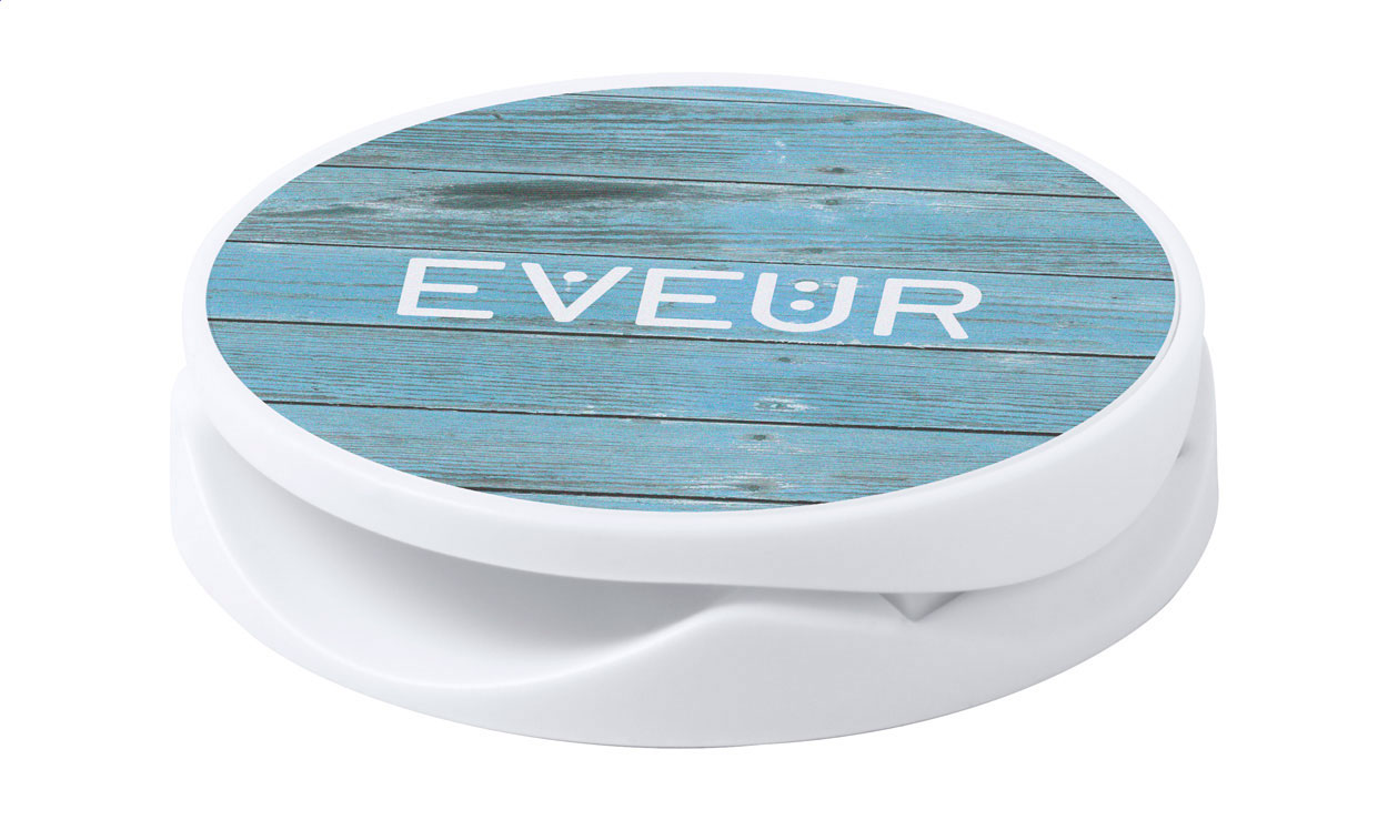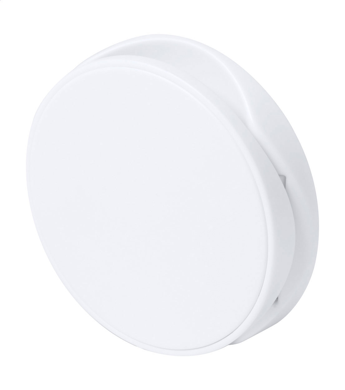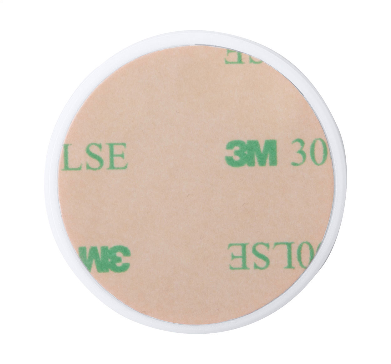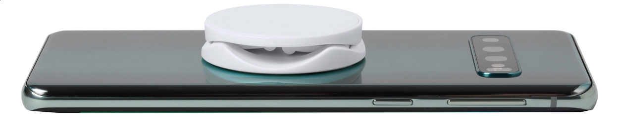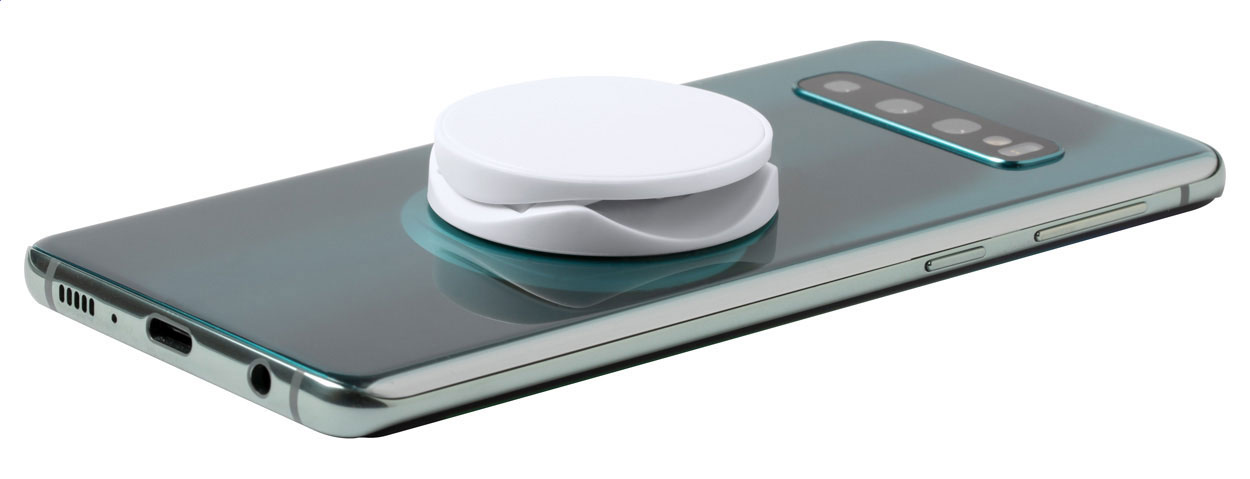 Supporto cellulare in plastica, di forma rotonda, con base autoadesiva.