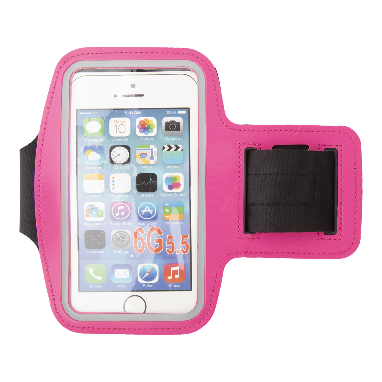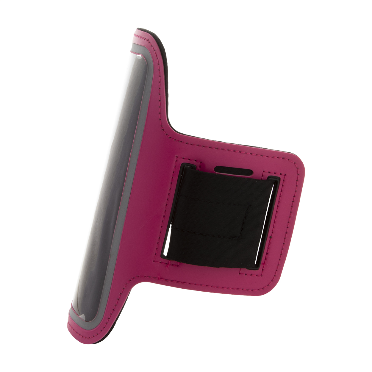 Portacellulare da braccio in pelle PU con finestra capacitiva e cornice riflettente. Si adatta a telefoni cellulari fino a 6 pollici di dimensione dello schermo.