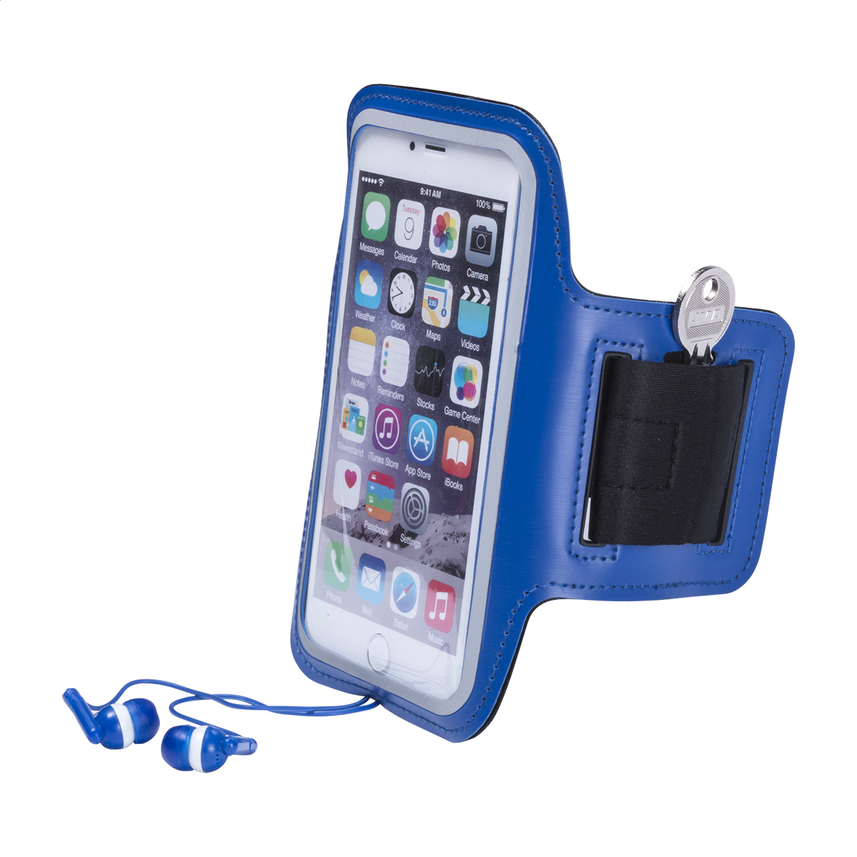 Portacellulare da braccio in pelle PU con finestra capacitiva e cornice riflettente. Si adatta a telefoni cellulari fino a 6 pollici di dimensione dello schermo.