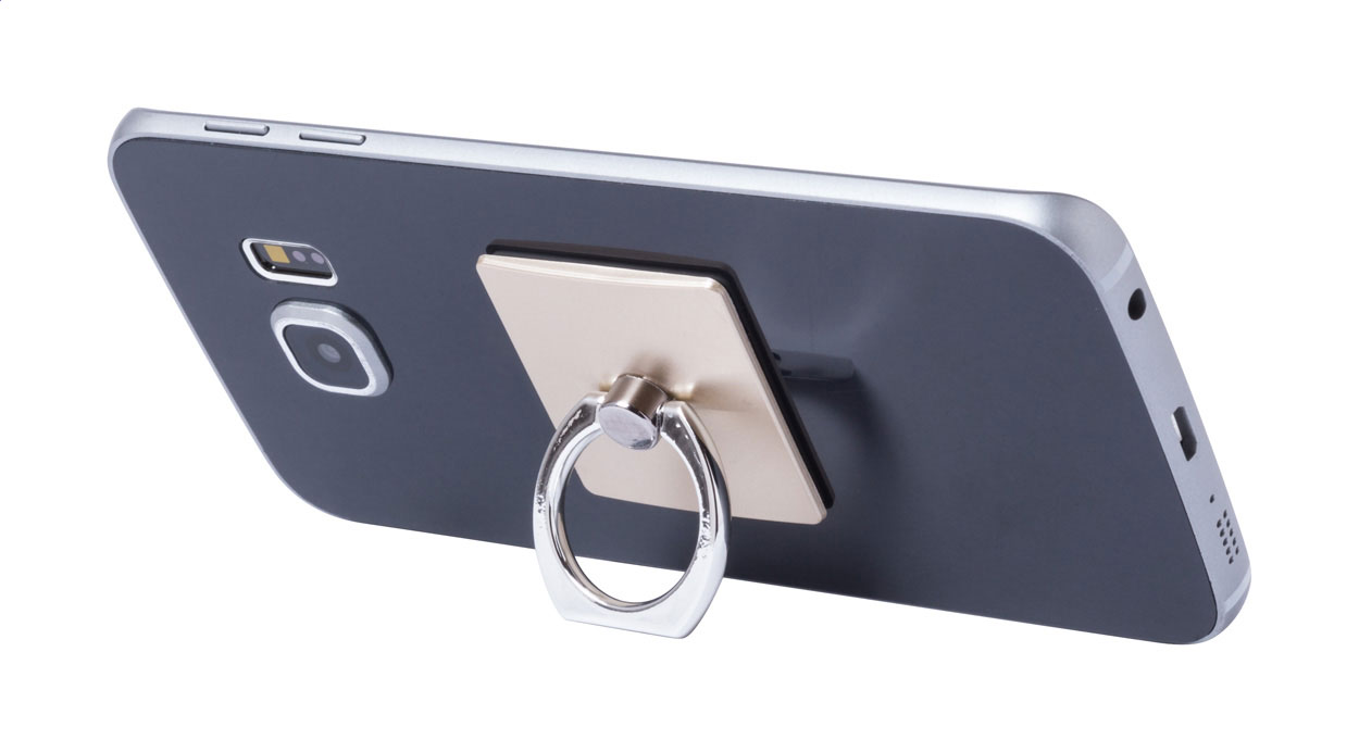 Supporto cellulare in plastica di forma quadrata con base autoadesiva.