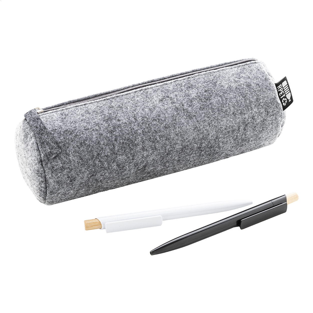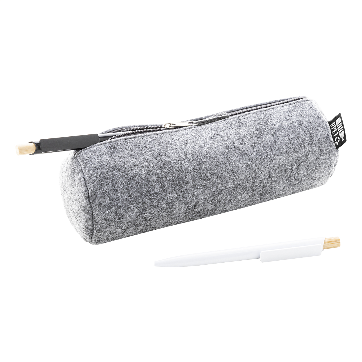 Astuccio in feltro RPET con cerniera ed etichetta RPET