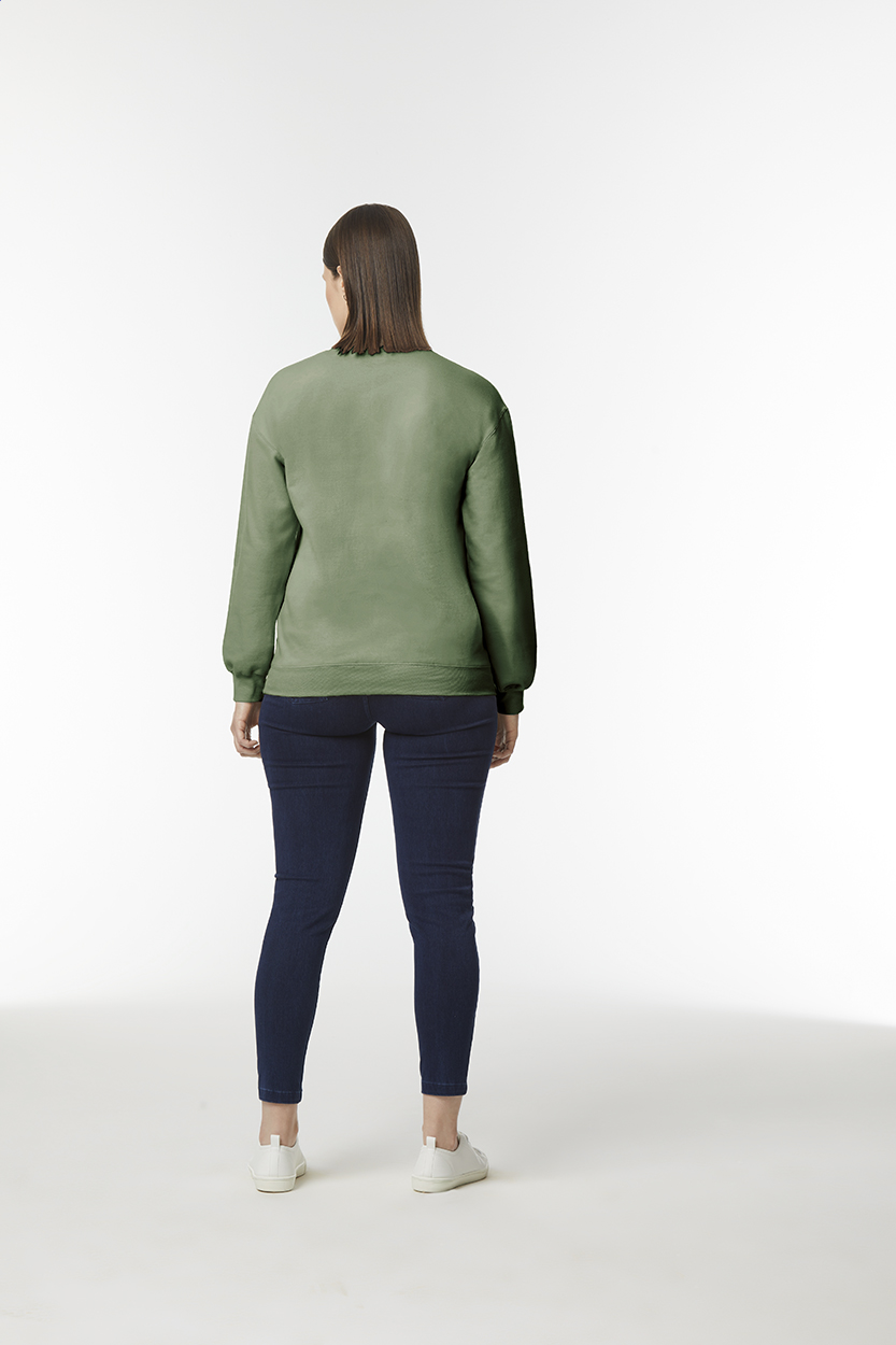 Felpa girocollo in 80% cotone e 20% poliestere da 285 g/m² (bianco 278 g/m²) e con tasca frontale. Prodotto a marchio Gildan.