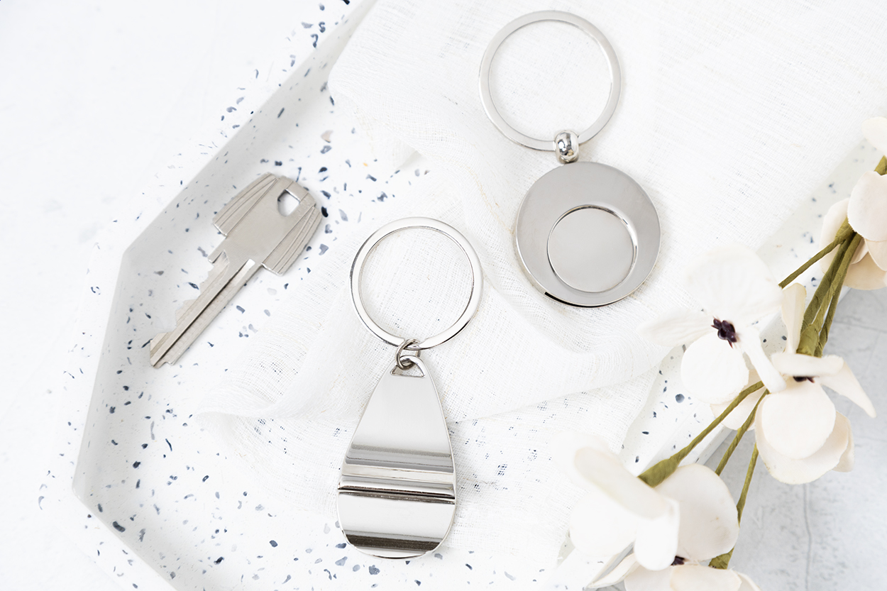 Cromo Portachiavi con gettone carrello argento