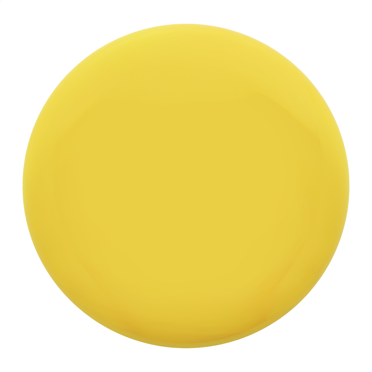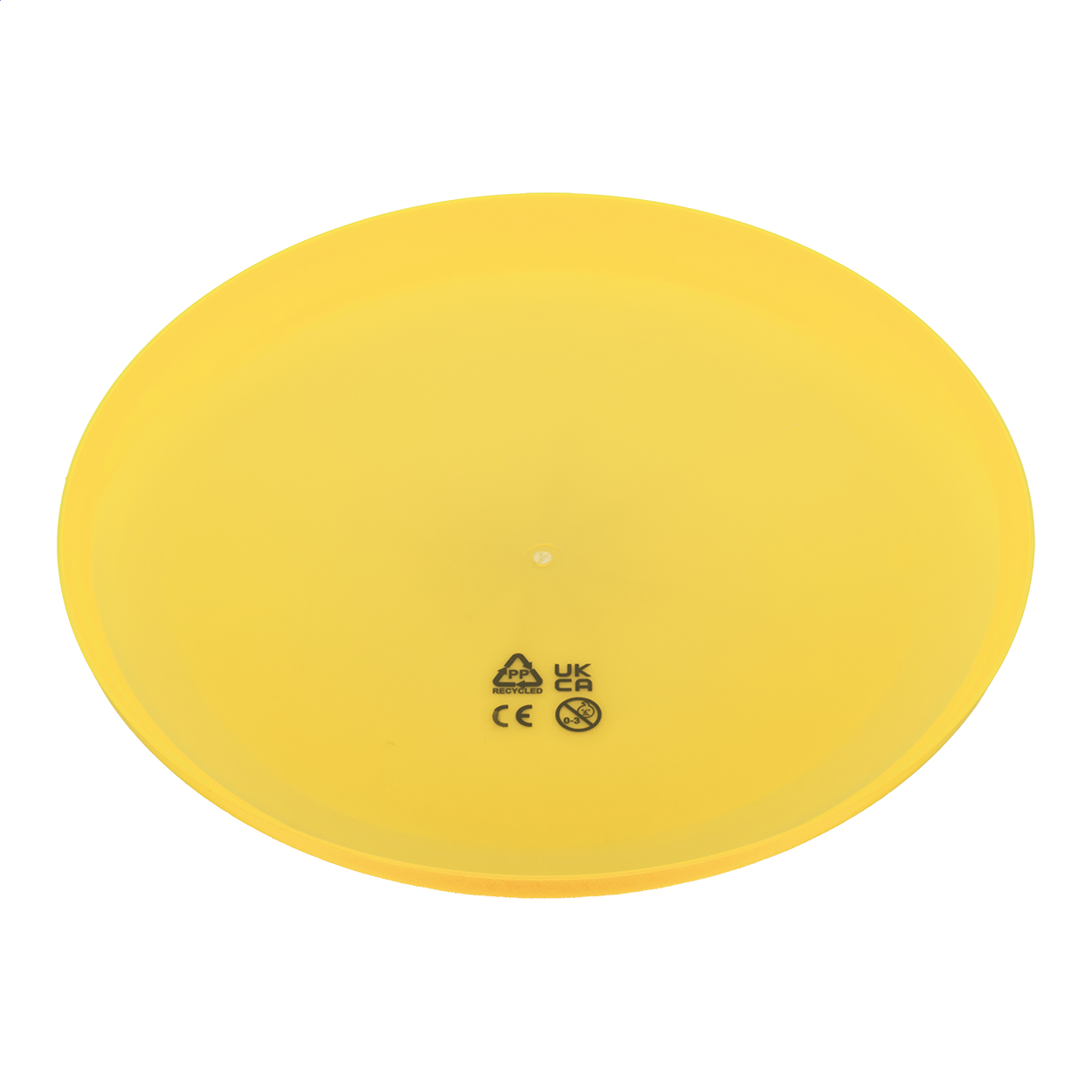 Frisbee in plastica PP riciclata con superficie piatta ideale per la stampa.