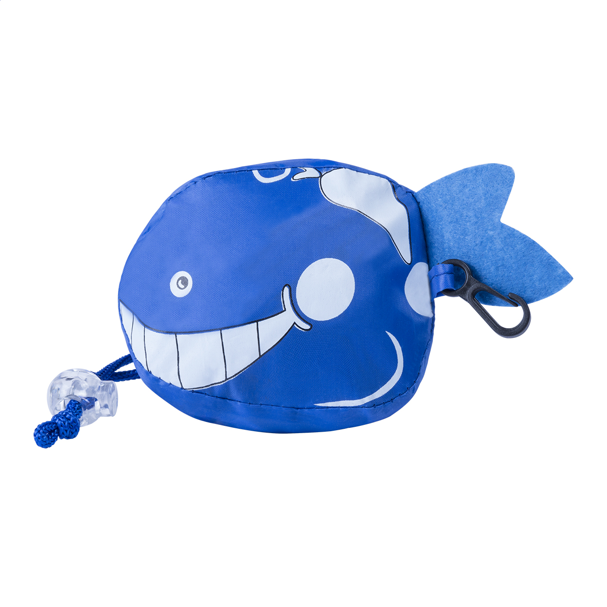 Sacca pieghevole con chiusura a coulisse per bambini con sacchetto contenitore a forma di animale e moschettone in plastica, poliestere 190T.