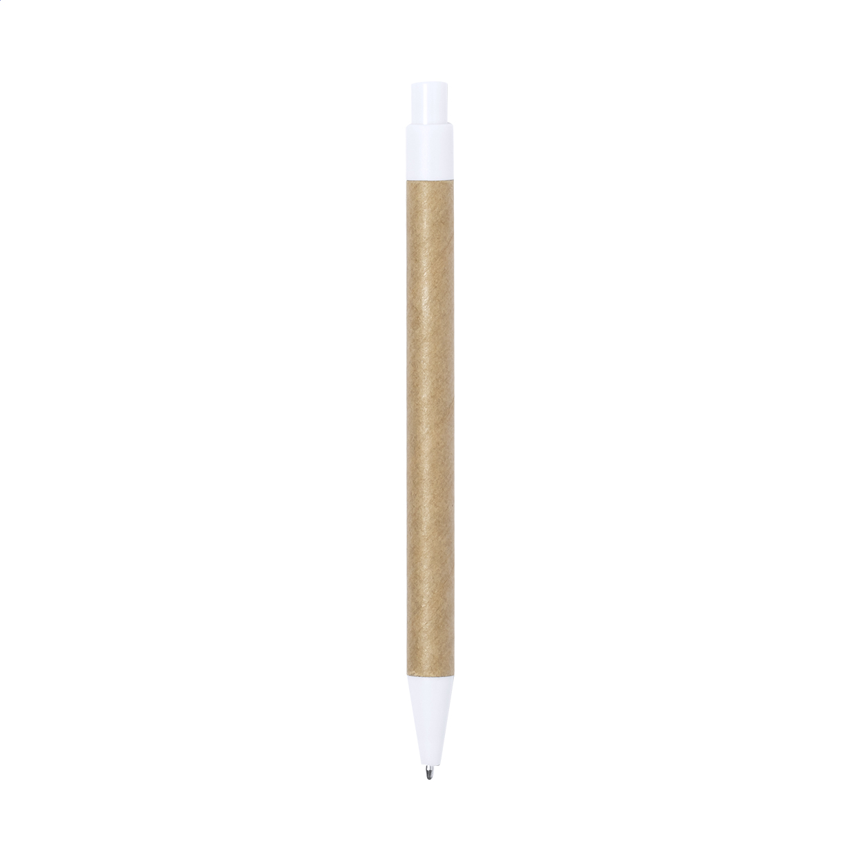 Quaderno con copertina in carta riciclata, 60 fogli bianchi e penna a sfera.