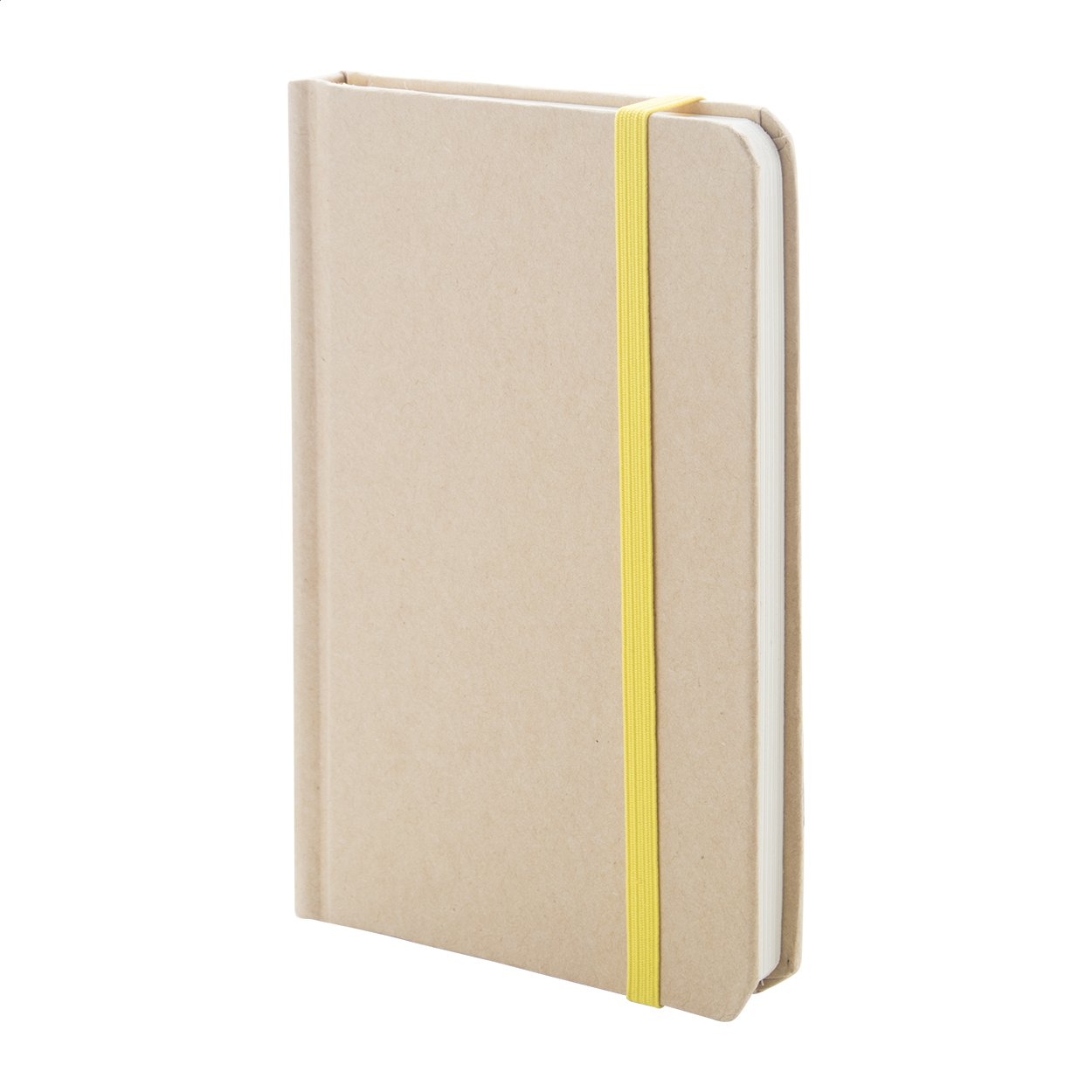 Quaderno con copertina in cartoncino e 100 fogli bianchi, segnalibro colorato ed elastico in gomma.