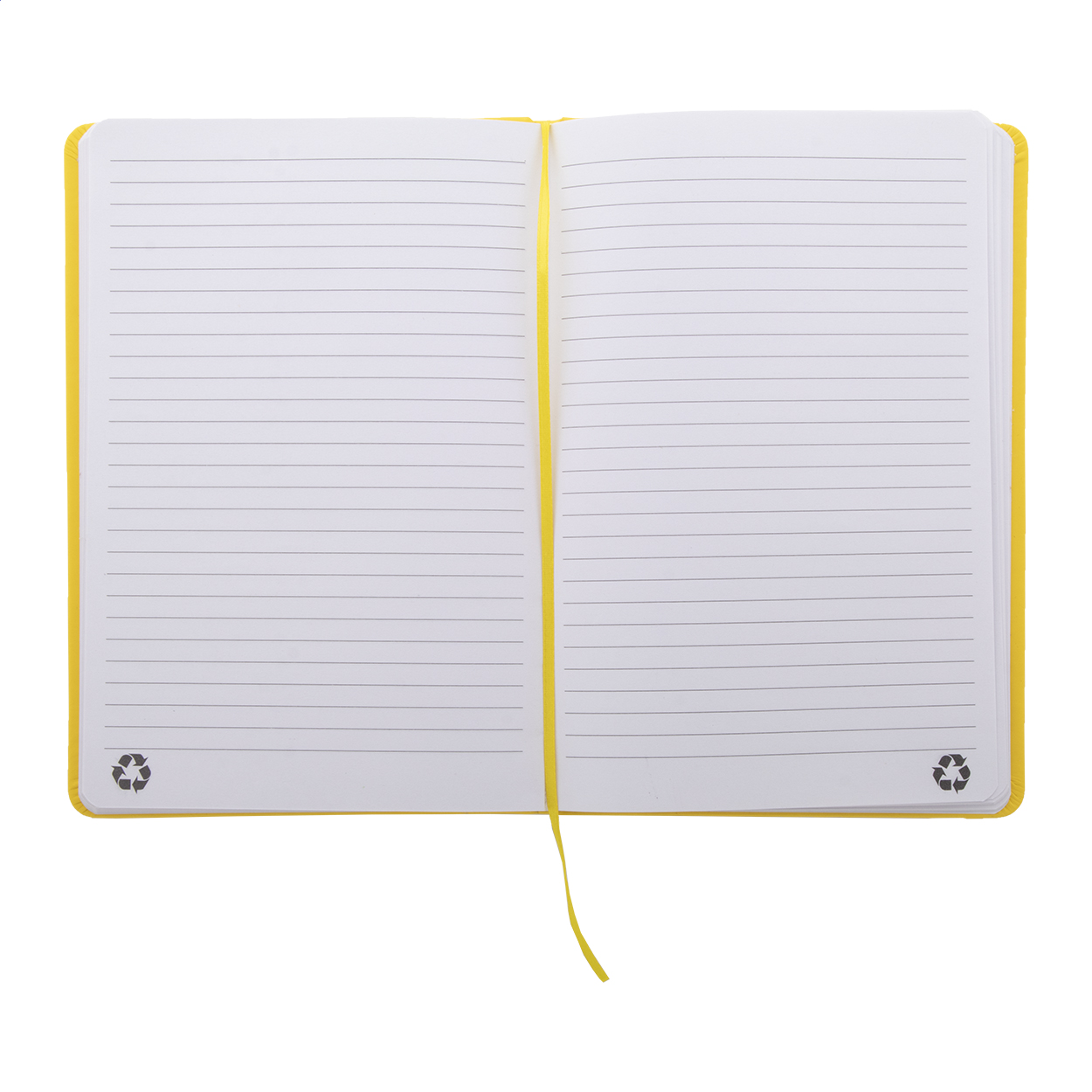 Quaderno con copertina in PU riciclato da 100 fogli in carta riciclata a righe. Segnalibro in colore coordinato ed elastico. Formato A5.