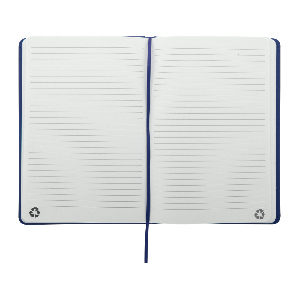 Quaderno con copertina in PU riciclato da 100 fogli in carta riciclata a righe. Segnalibro in colore coordinato ed elastico. Formato A5.