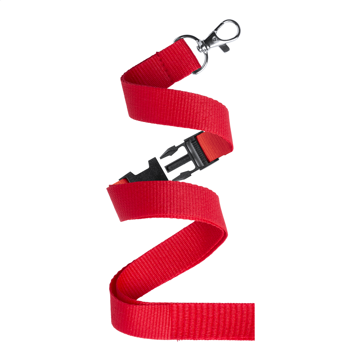Lanyard in poliestere con moschettone metallico staccabile.