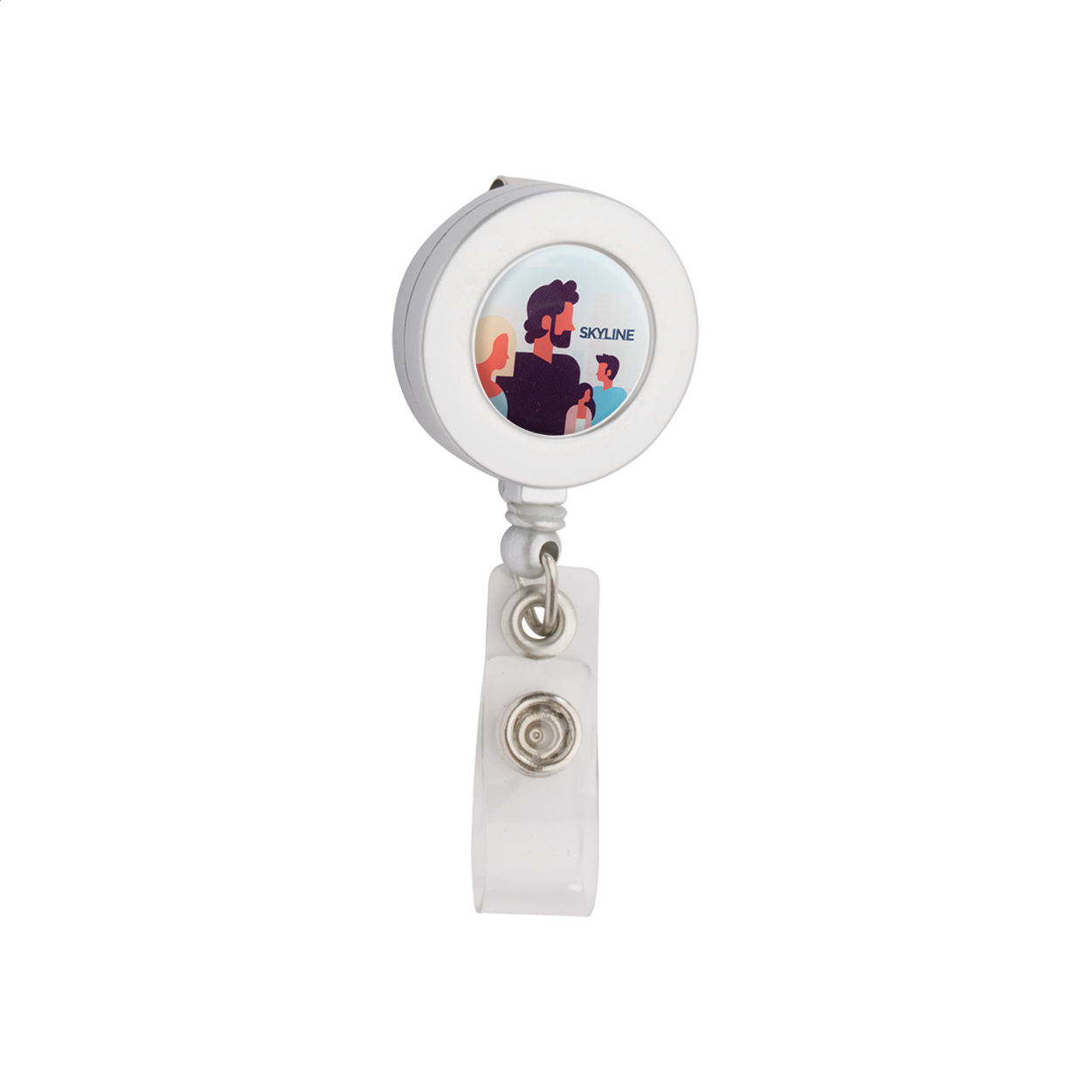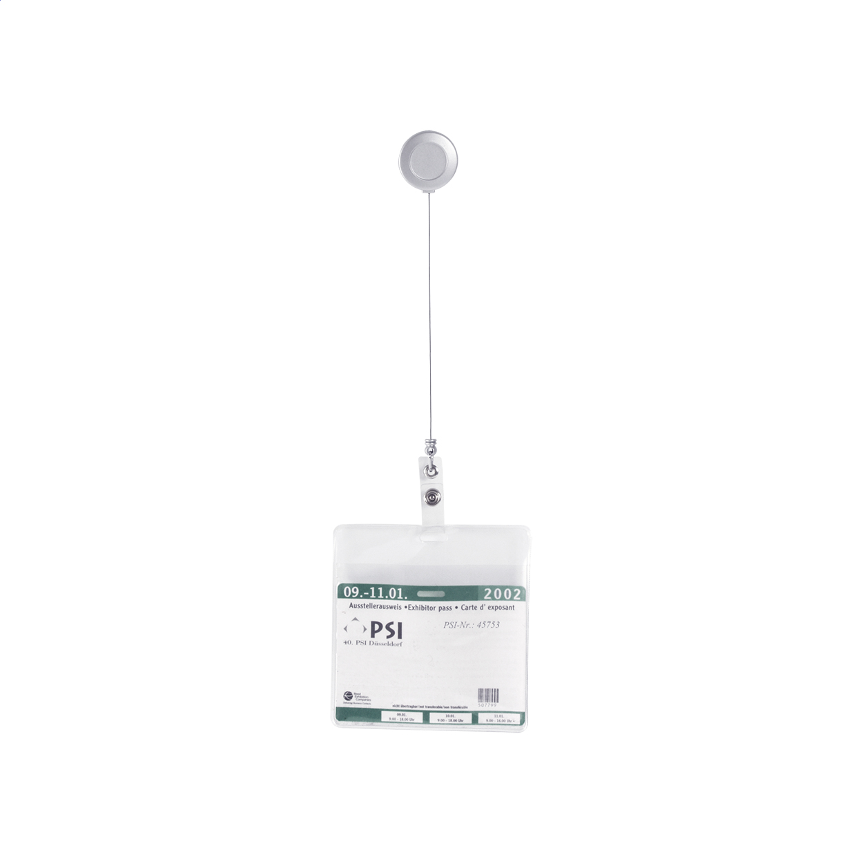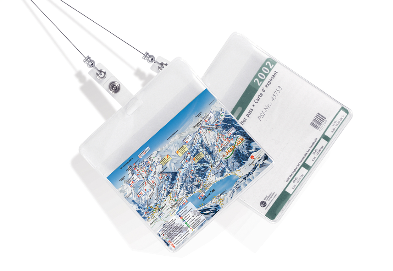 Porta pass telescopico con chiusura a pressione e clip in metallo.