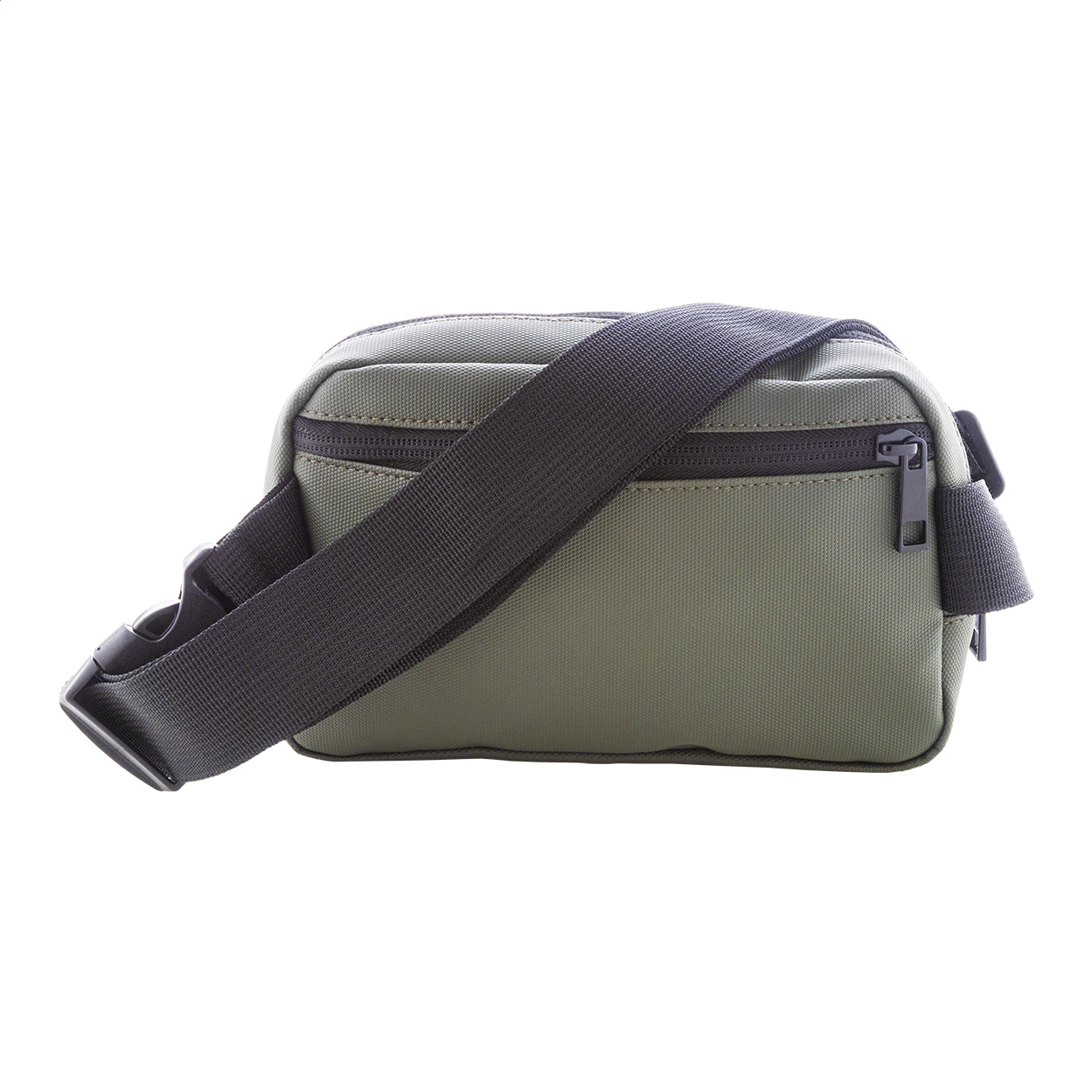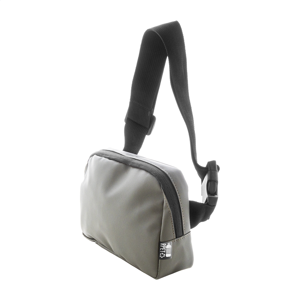 Marsupio impermeabile in poliestere 600D RPET con 2 scomparti chiusi da cerniera, tasche interne in rete e tracolla regolabile. Rivestimento in PU ed etichetta RPET.
