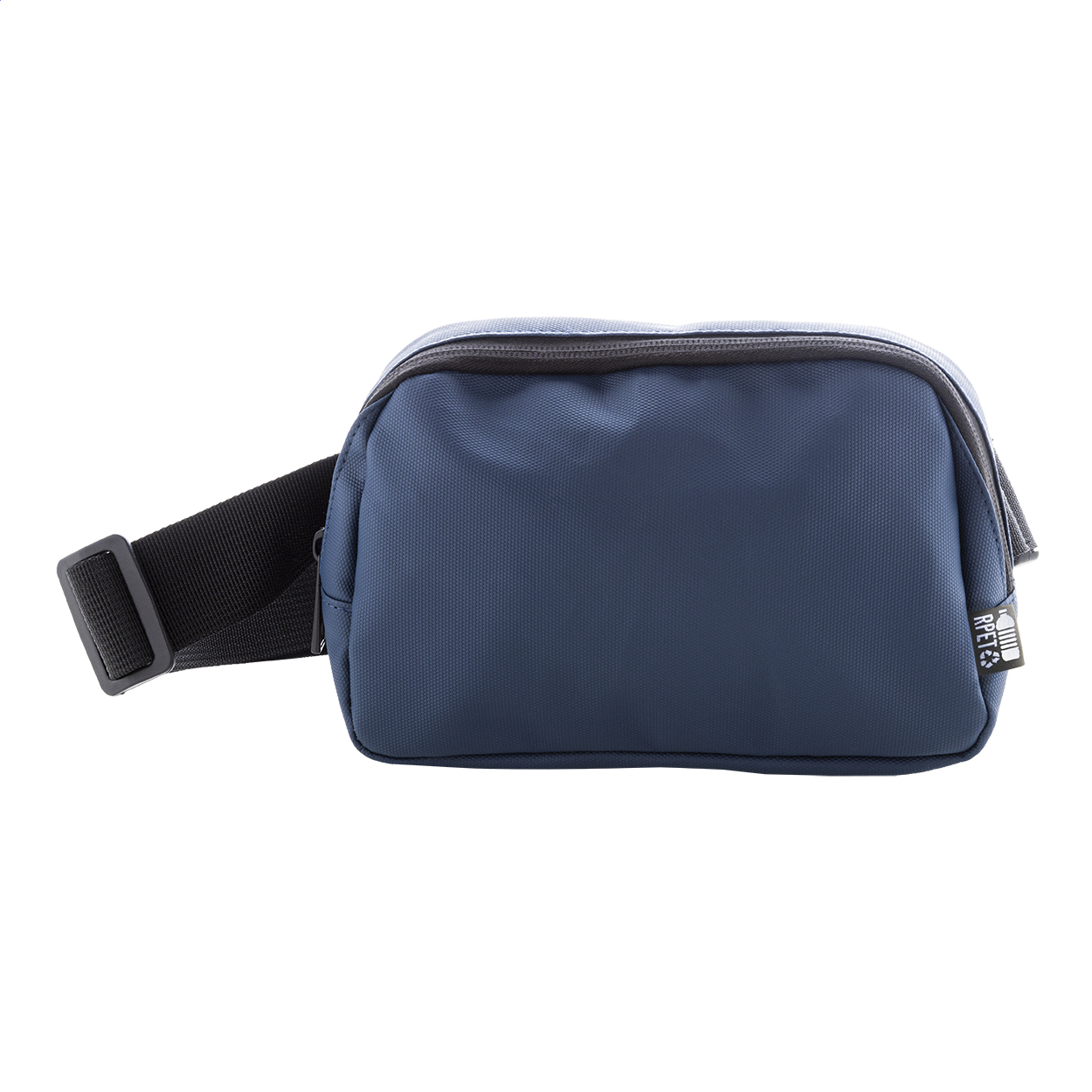 Marsupio impermeabile in poliestere 600D RPET con 2 scomparti chiusi da cerniera, tasche interne in rete e tracolla regolabile. Rivestimento in PU ed etichetta RPET.