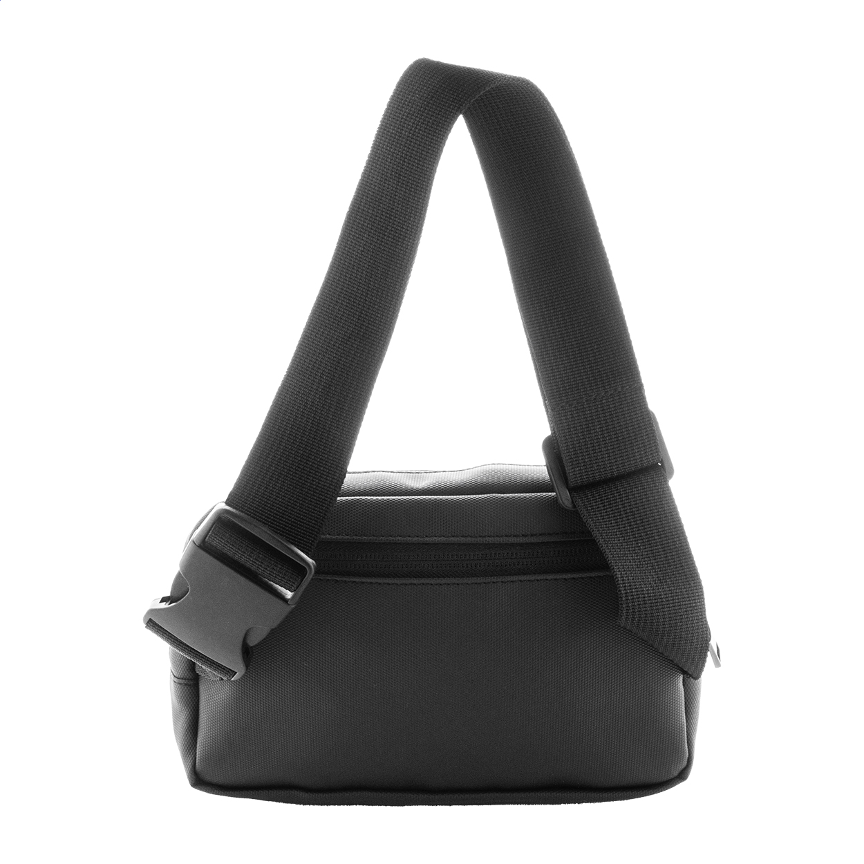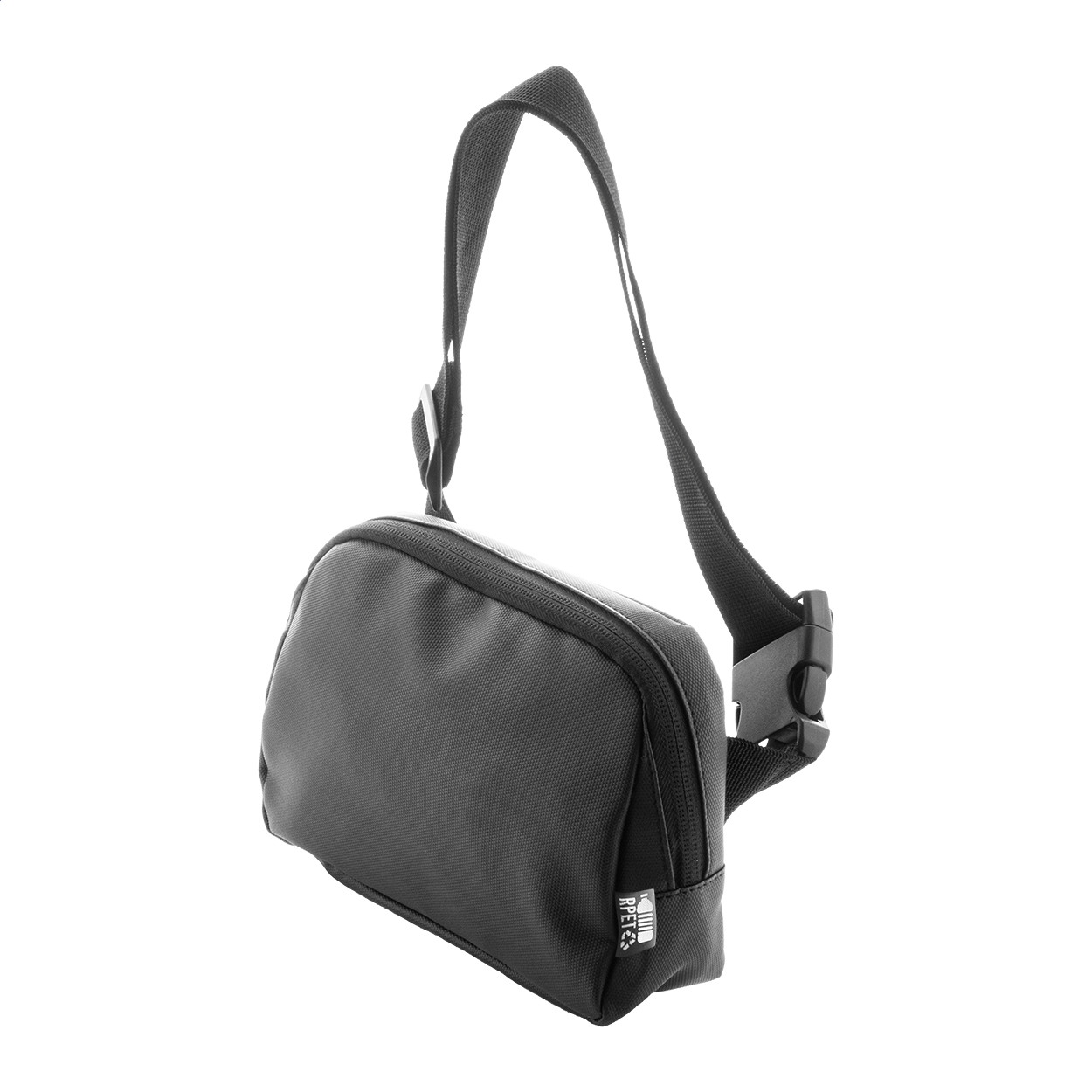 Marsupio impermeabile in poliestere 600D RPET con 2 scomparti chiusi da cerniera, tasche interne in rete e tracolla regolabile. Rivestimento in PU ed etichetta RPET.