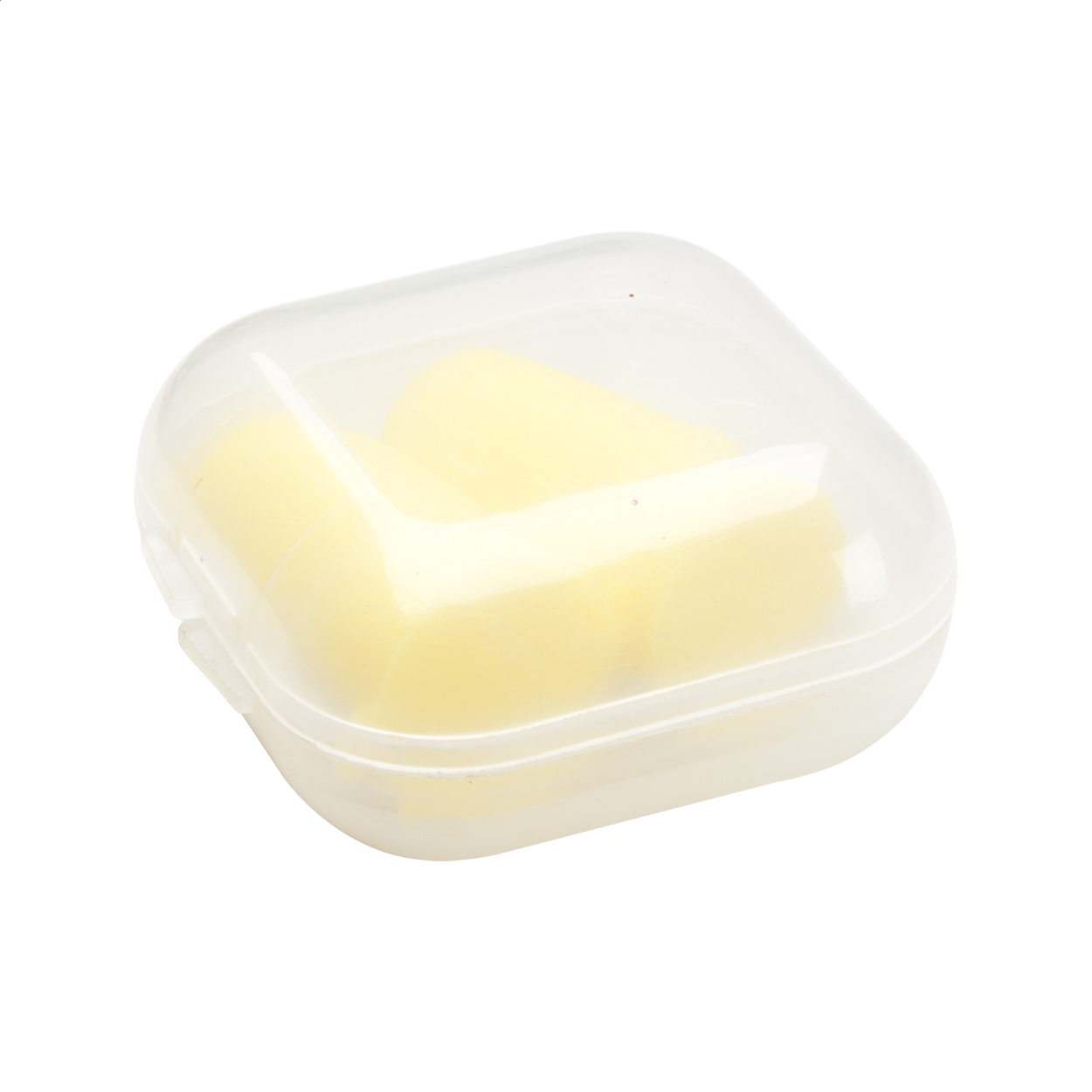Tappi per le orecchie in EVA colorato con astuccio di plastica trasparente.