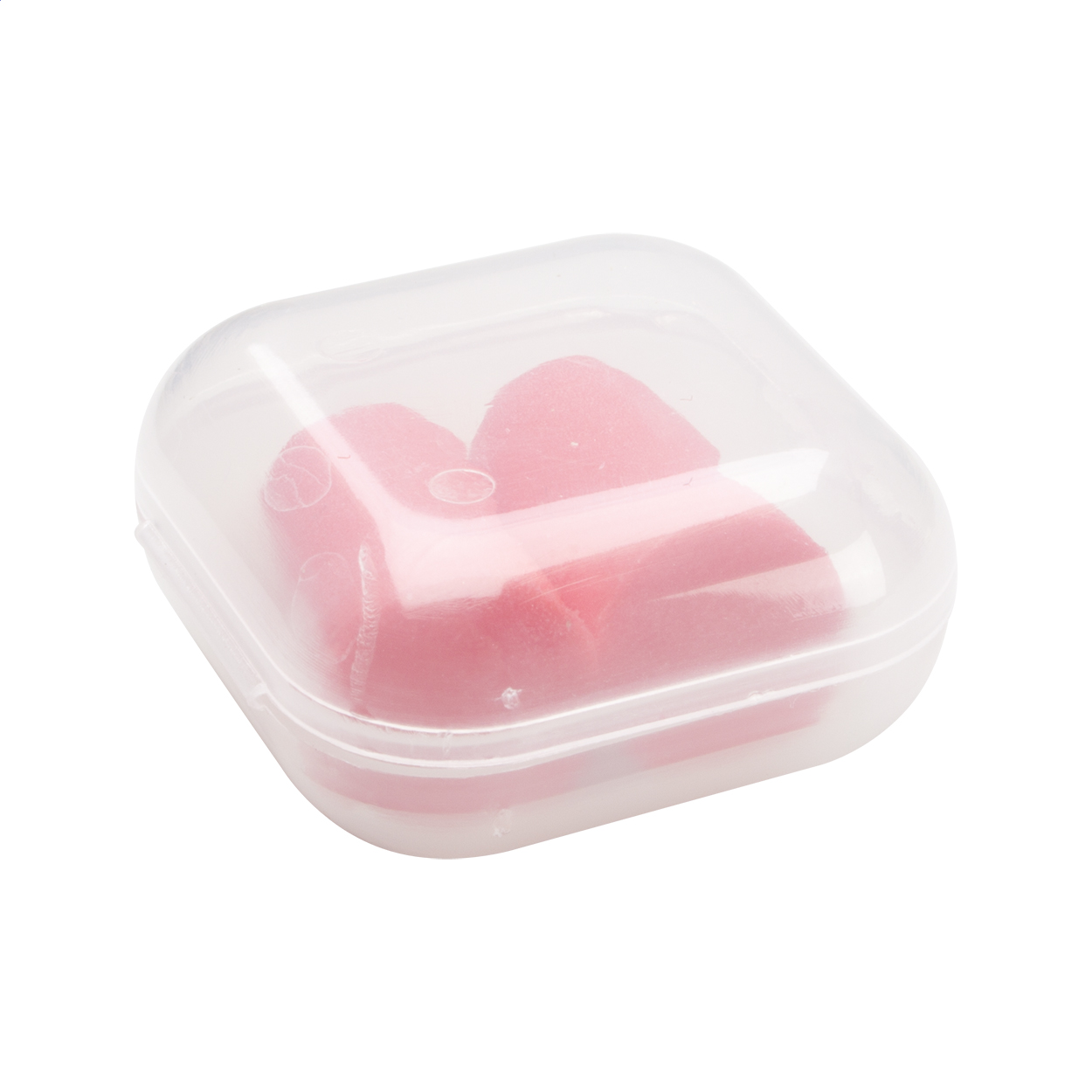 Tappi per le orecchie in EVA colorato con astuccio di plastica trasparente.