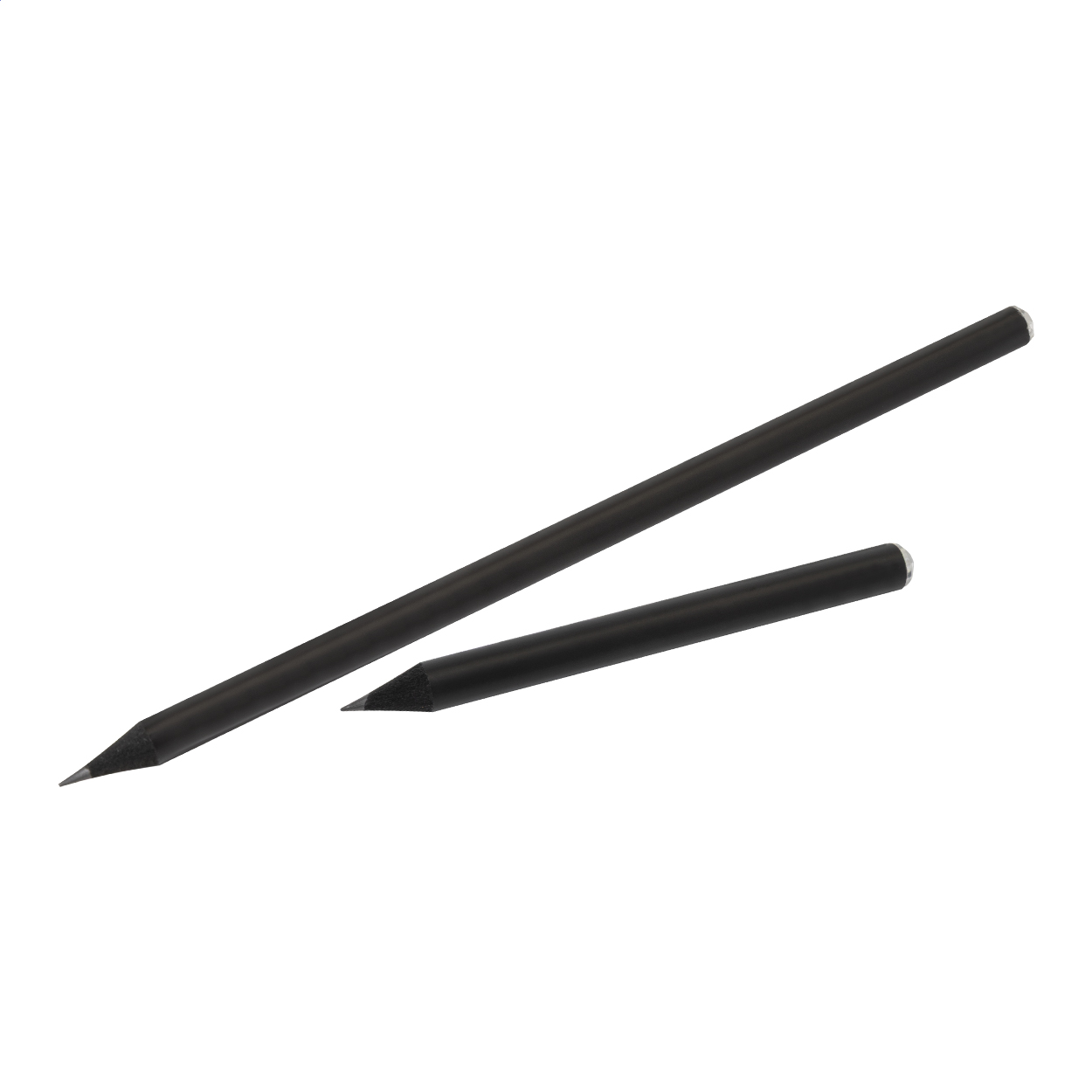 Mini matita con fusto in legno nero, durezza HB, e decorazione acrilica. Fornita temperata.