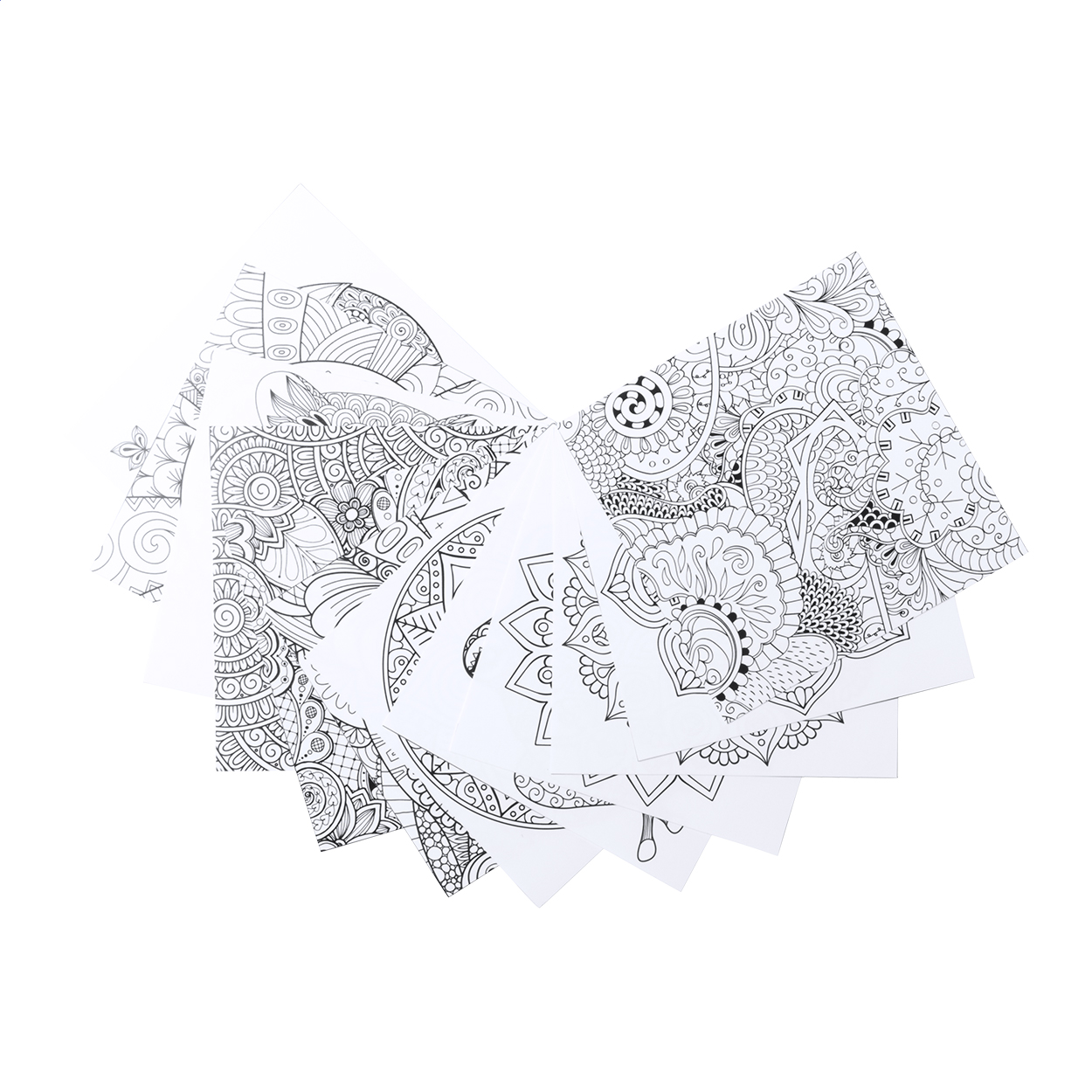 Set con 12 matite colorate e 12 fogli con disegni Mandala.