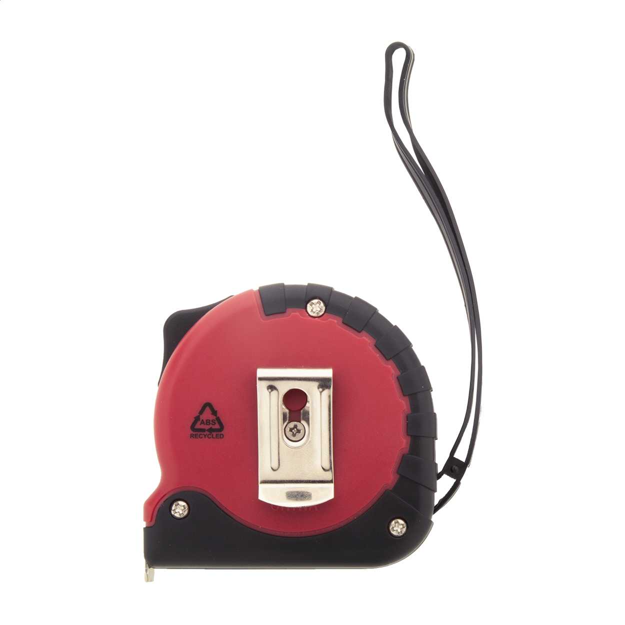 Flessometro in plastica ABS riciclata con funzione di blocco, clip in metallo e cinturino per la mano, 5 m.