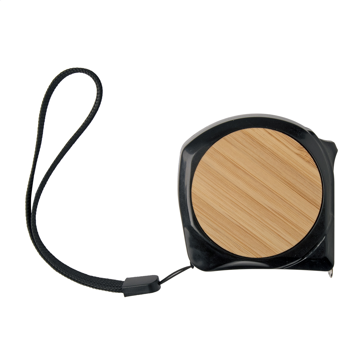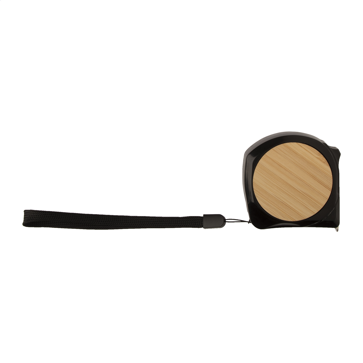 Flessometro in plastica e bambù con funzione di blocco, clip in metallo e laccetto, 5 m.
