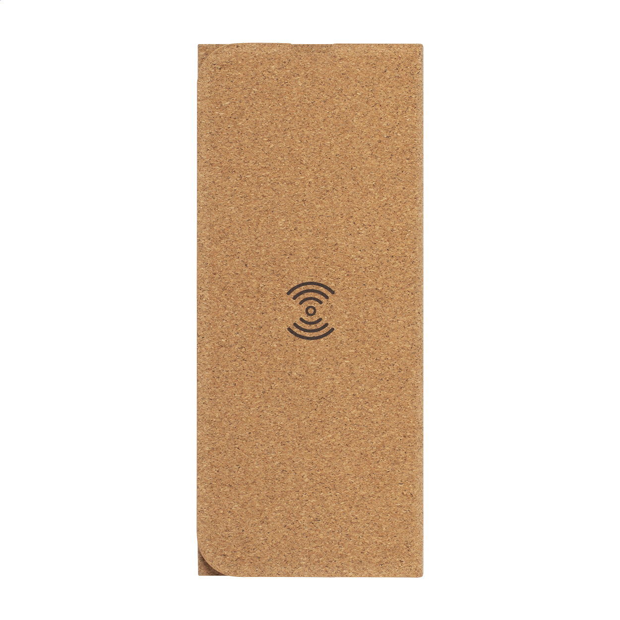 Tappetino per mouse in sughero naturale con caricabatterie wireless (5W) e porta cellulare integrato. Cavo di ricarica USB incluso.