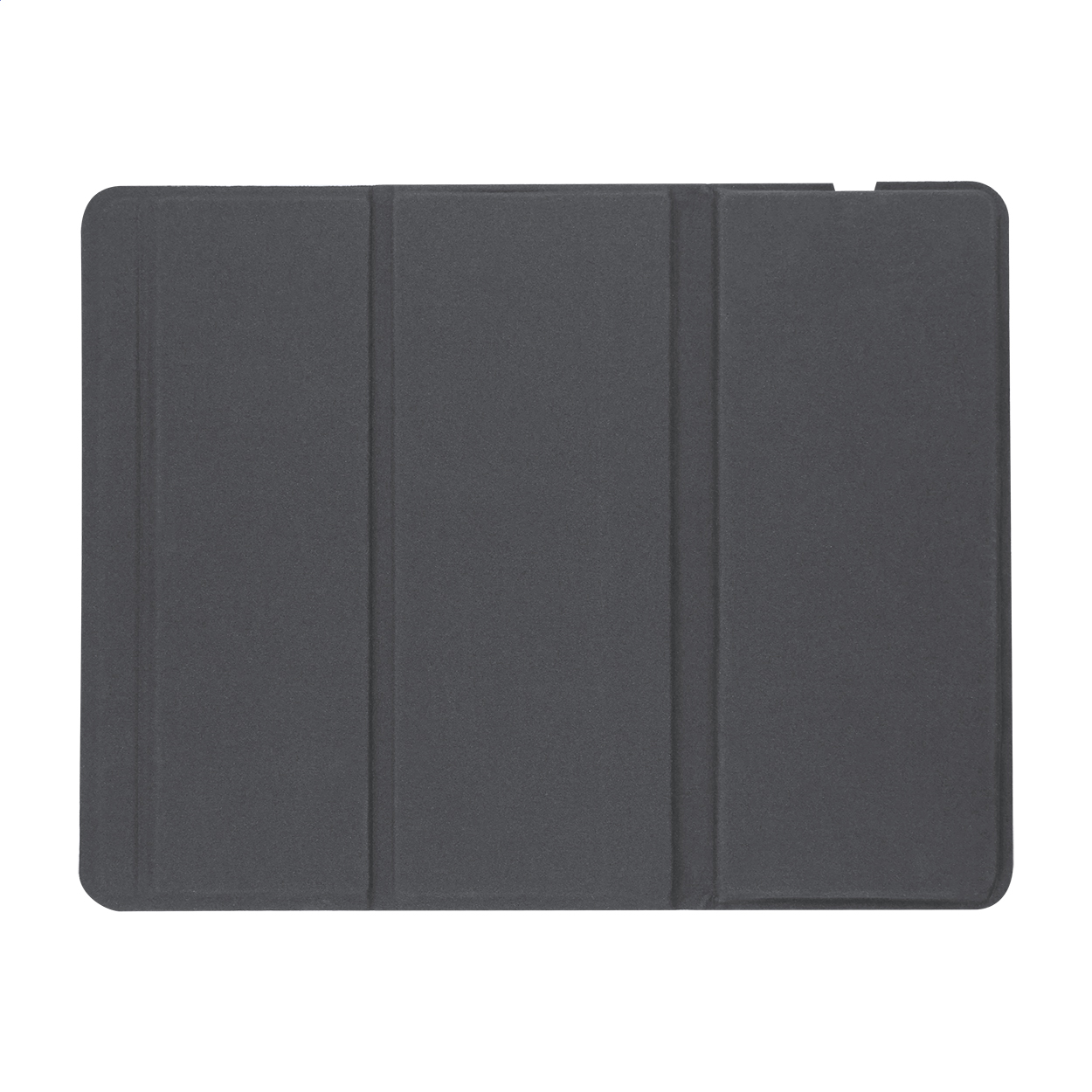 Tappetino per mouse ripiegabile in pelle PU riciclata con caricatore wireless integrato (10W) e funzione portacellulare. Con base antiscivolo in velluto e cavo di ricarica USB incluso.