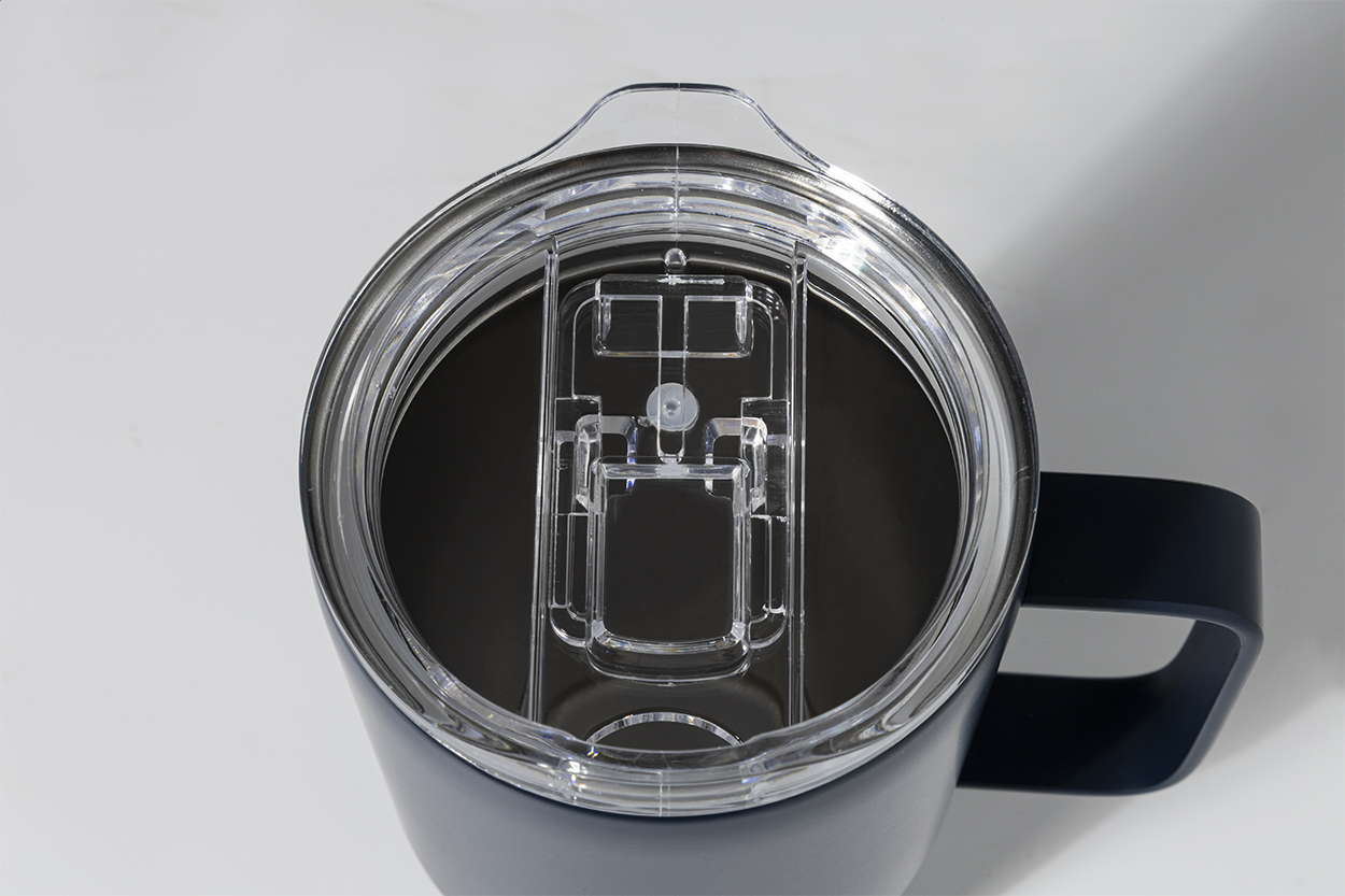 Tazza mug termica da 600ml. in acciaio inox riciclato a doppia parete con struttura termica sottovuoto e coperchio in plastica PS.