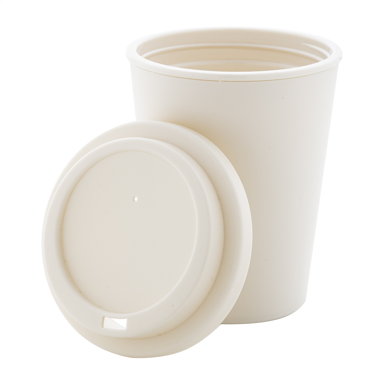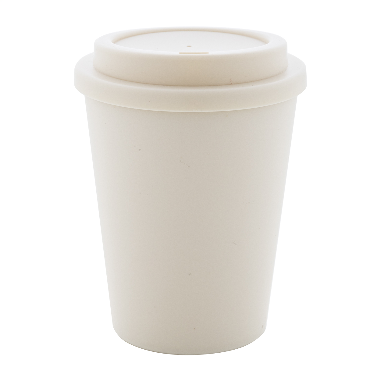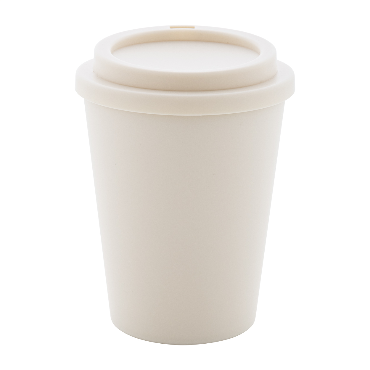Bicchiere termico a doppia parete in plastica PP con capacità di 300ml. e coperchio erogatore.