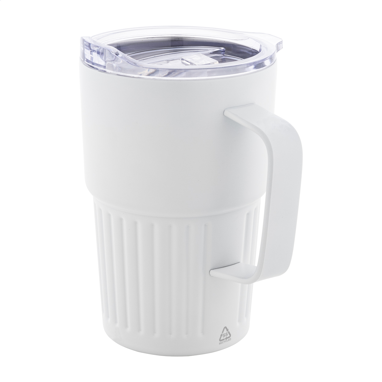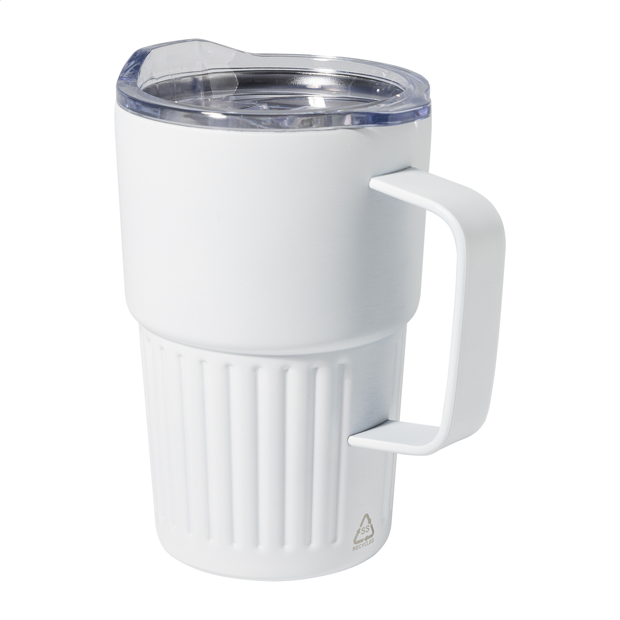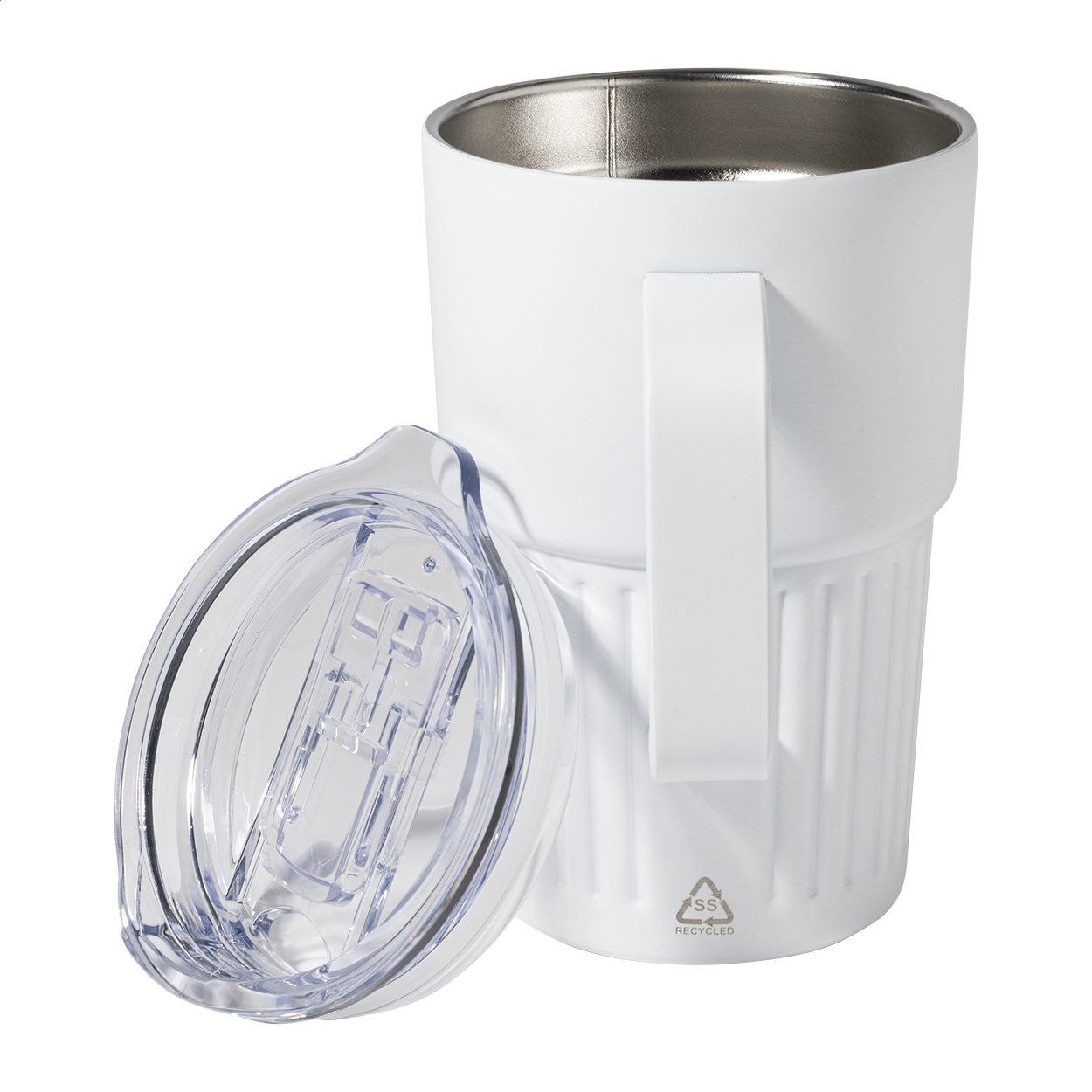 Tazza termica a doppia parete in acciaio inox riciclato da 470 ml. con coperchio in plastica ABS.